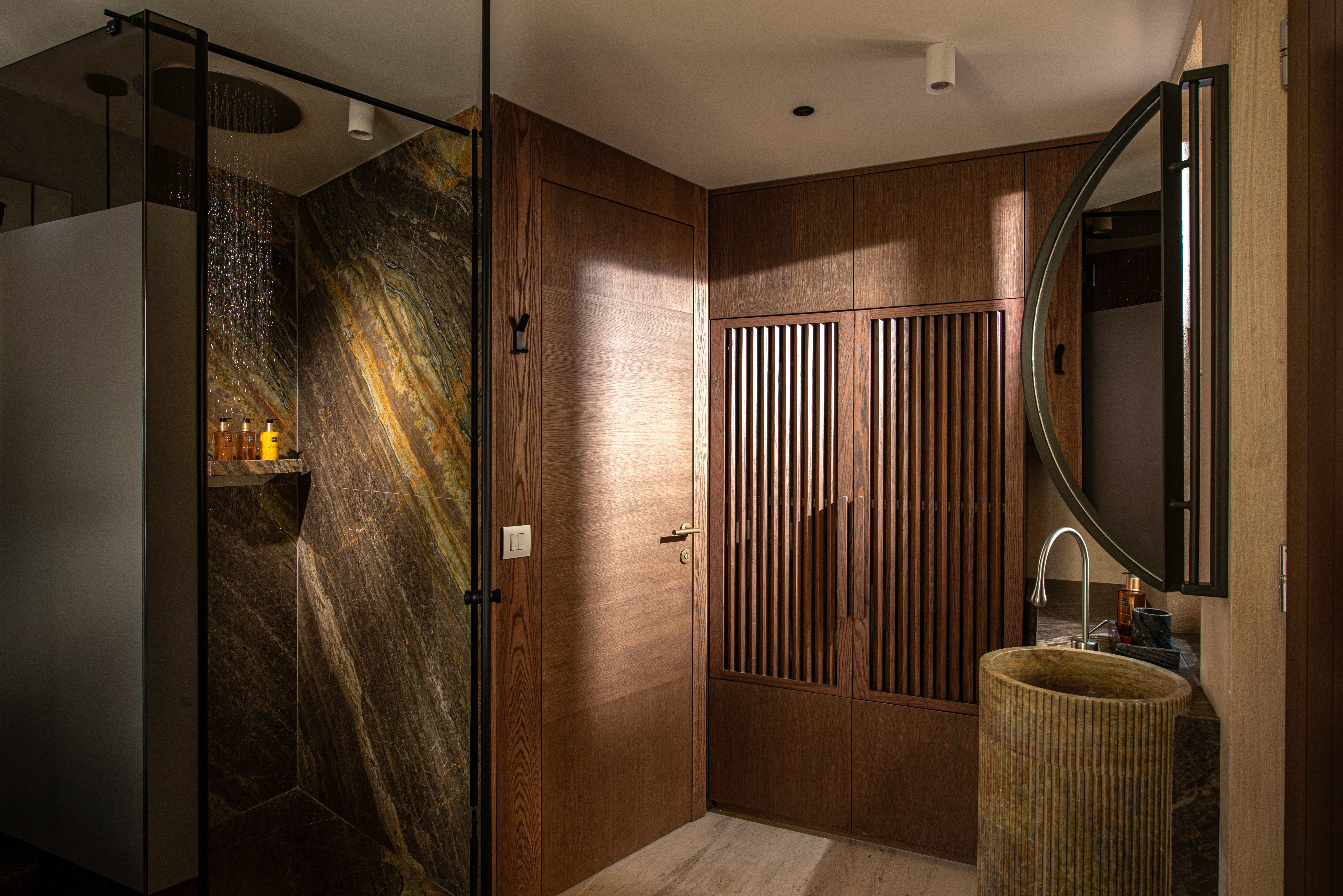 Step into a world of refined elegance as you explore the interior of Villa Meltemi. This spacious 4-bedroom, 4-bathroom apartment is designed with a modern aesthetic that incorporates both style and functionality. Each bedroom features an en-suite bathroom, ensuring privacy and convenience for all guests. The open-concept living area is perfect for social gatherings, while the fully equipped kitchen caters to culinary enthusiasts. Thoughtfully designed with family-friendly features and suitable for remote work, this apartment is a haven for relaxation and productivity.
