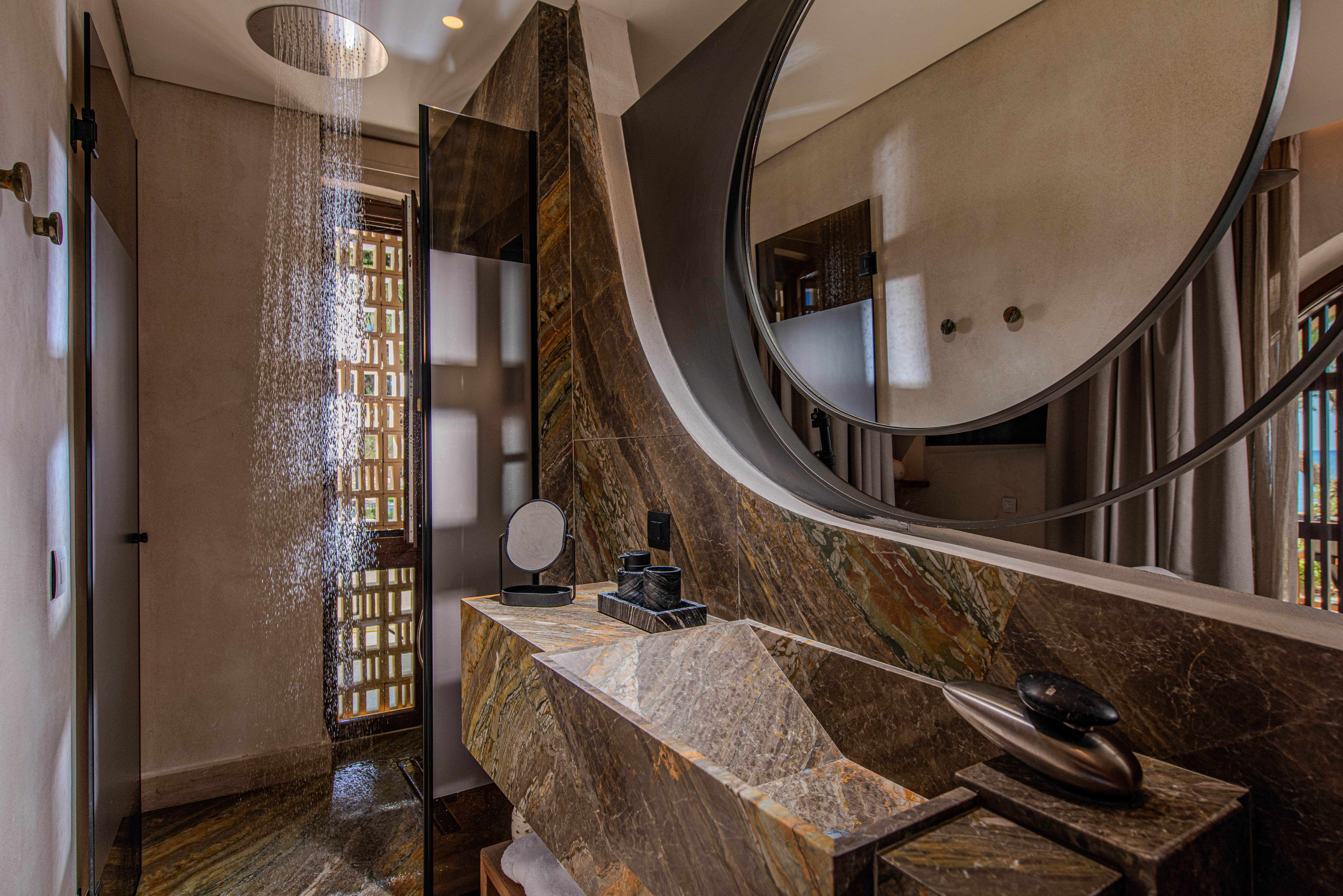 Step into a world of sophistication as you enter this meticulously designed villa. Spread across three levels, the interior boasts a sleek, modern aesthetic with spacious living areas and state-of-the-art facilities. The main suite features a private office and a living area, complete with a balcony that offers breathtaking views of the sea. Each of the six bedrooms is a sanctuary of comfort, with en-suite bathrooms providing ultimate privacy. A fully equipped kitchen and an elegant dining area cater to all your culinary needs, while a separate studio bedroom is available upon request, ensuring ample space for every guest.