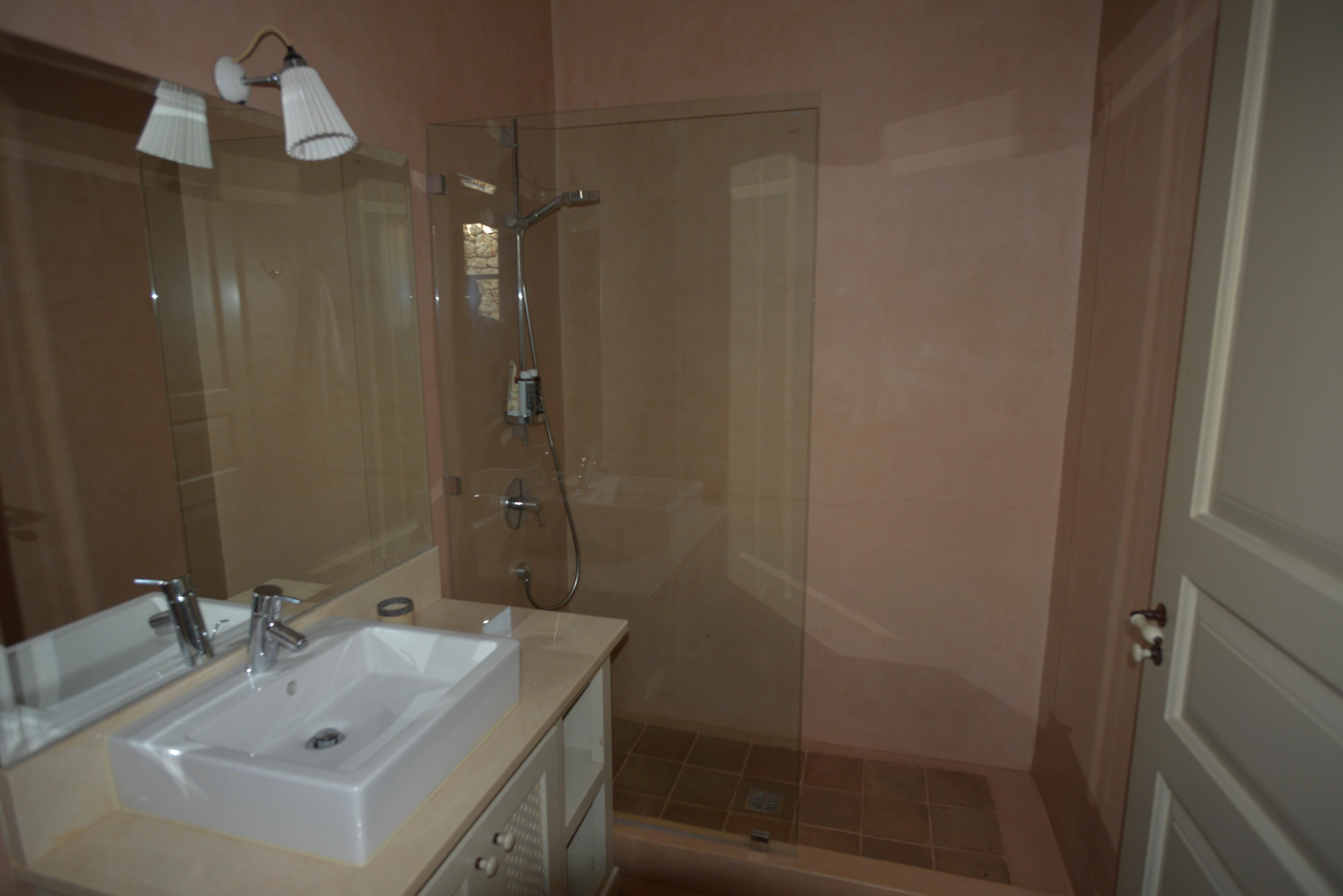 Step inside the beautifully designed interiors, where each room exudes elegance and style. The five spacious bedrooms, each with its own en-suite bathroom, are thoughtfully arranged across two floors, ensuring privacy and comfort for up to ten guests. Antique furnishings, such as the vintage English washstand and Persian carpets, add a touch of history, while the modern amenities, including air conditioning and plush furnishings, ensure a comfortable stay. The fully equipped kitchen and open-plan living area provide ample space for relaxation and entertainment.
