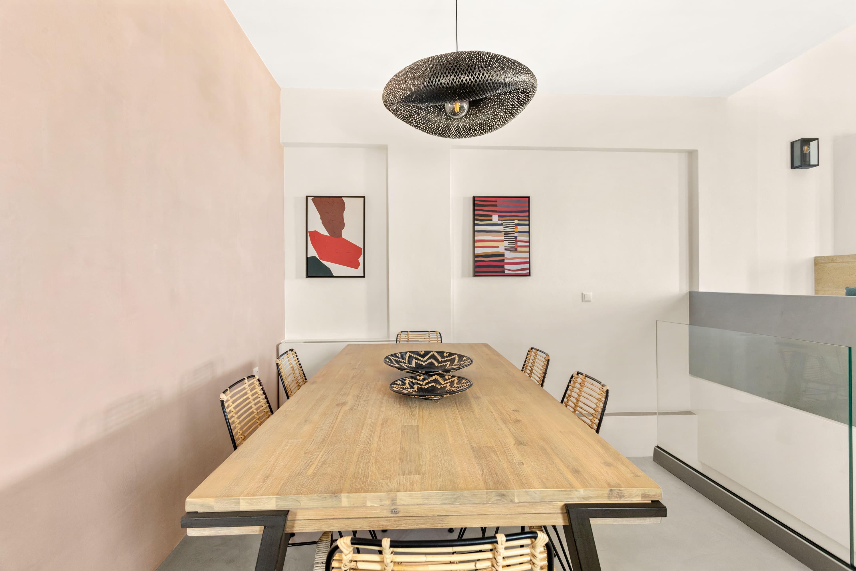 Step inside the beautifully designed interior where elegance and comfort seamlessly combine. The main villa boasts an array of sophisticated living spaces, alongside a separate guesthouse for two, ideal for privacy. With six spacious bedrooms, some equipped with desks for remote work, and four modern bathrooms, this apartment is designed to accommodate up to 12 guests comfortably. The fully-equipped kitchen and stylish dining areas provide the perfect settings for memorable meals.