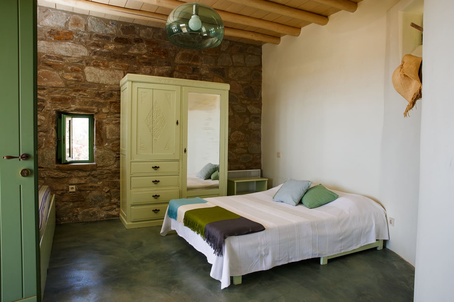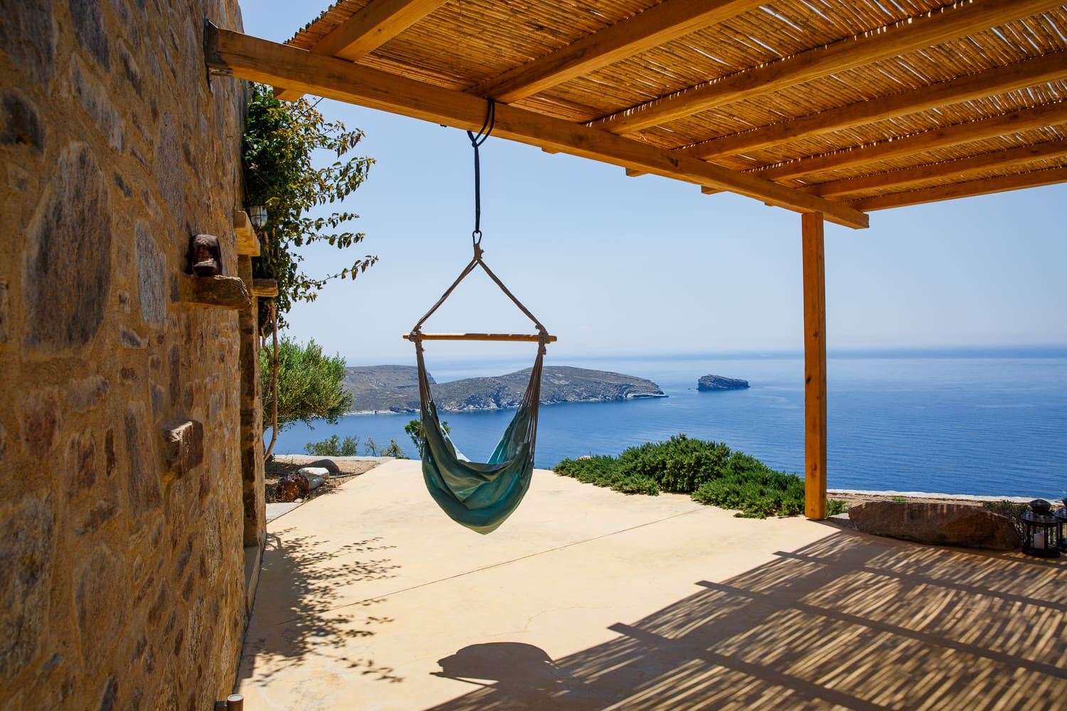 Outside, the villa boasts a private terrace with a swimming pool, offering a front-row seat to mesmerizing sunsets. The surrounding rock garden provides a unique blend of indoor and outdoor living, complete with a hammock for those lazy afternoons. Just steps away, the award-winning Vagia Beach beckons with its crystal-clear waters, promising days of sun-soaked bliss.