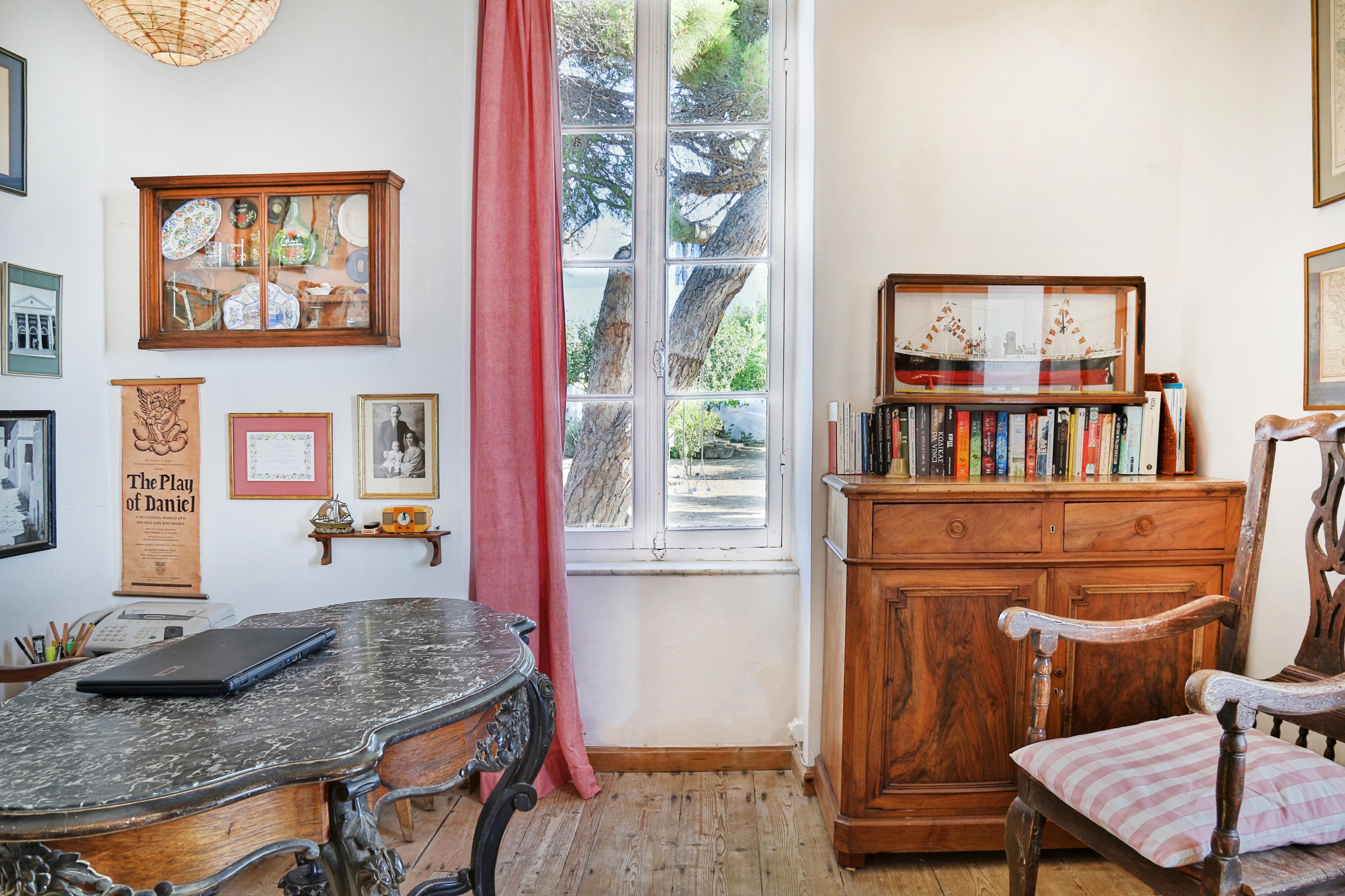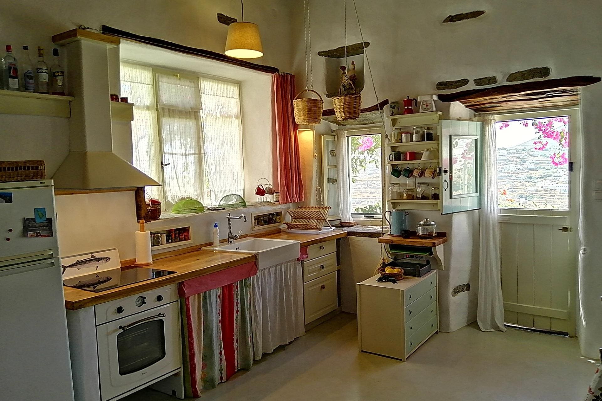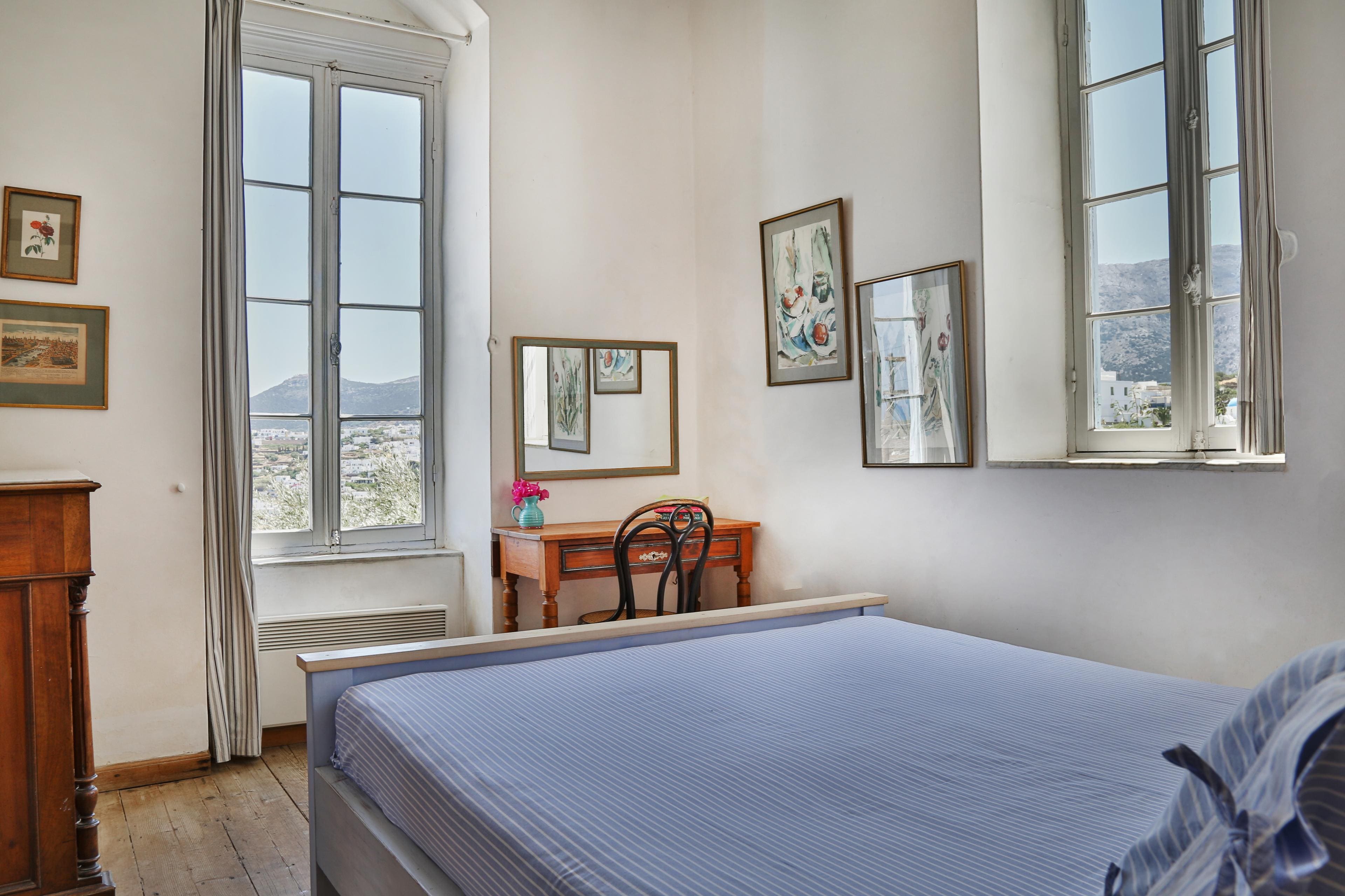 Step inside to discover a harmonious blend of traditional Greek architecture and modern comforts. The main house features five bedrooms, accommodating up to eight guests, each room thoughtfully designed to offer comfort and style. The adjoining Wine Press studio provides additional space, complete with a double bed, an optional two singles in the mezzanine, a private bathroom, and a kitchenette. This unique setup is perfect for families with children or those desiring extra privacy.