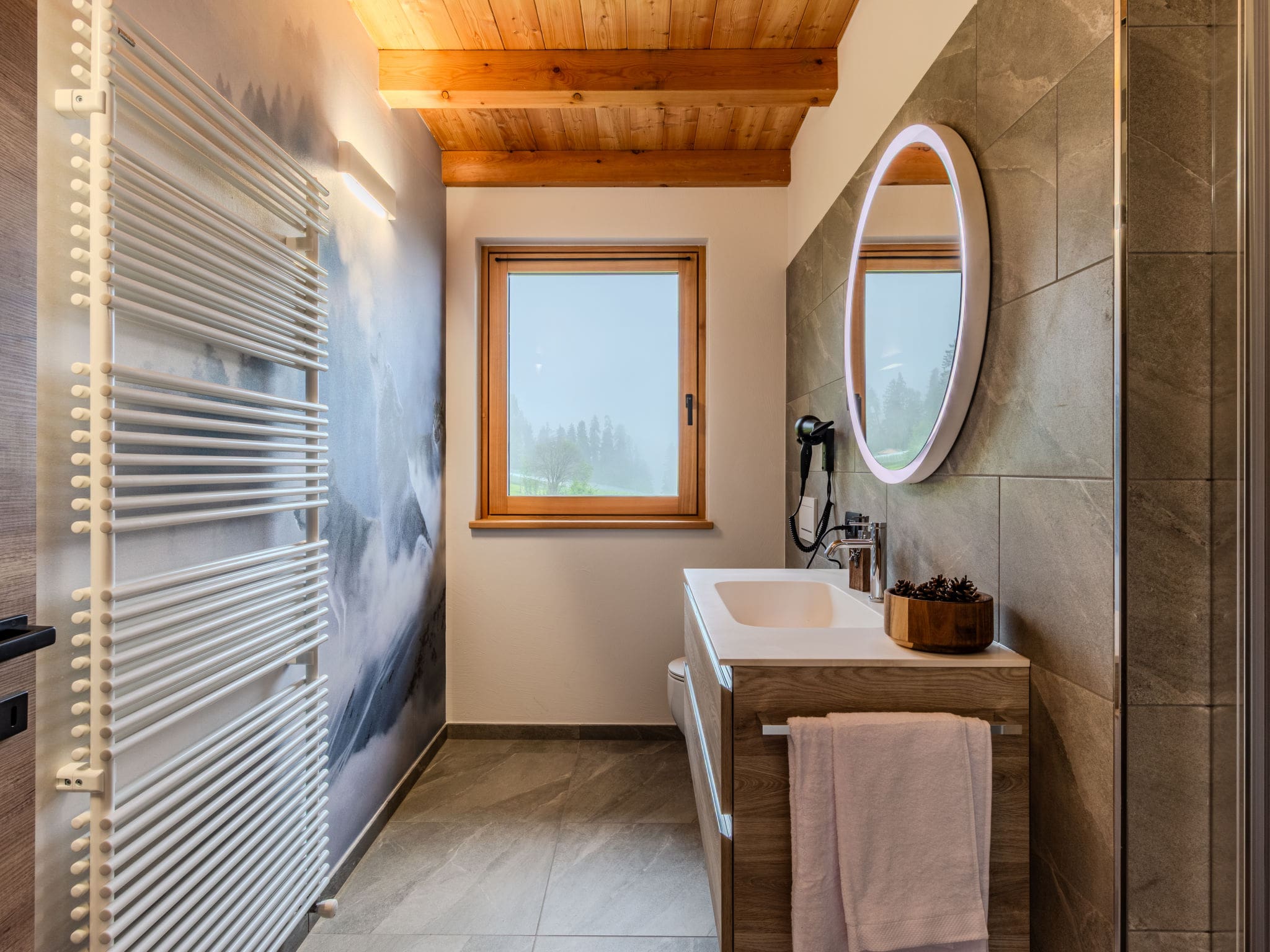 Spanning 178 square metres across two thoughtfully designed levels, Villa Mendola Non accommodates up to twelve guests in six beautifully appointed bedrooms. The ground floor welcomes you with a spacious living area featuring floor-to-ceiling windows that frame the surrounding meadows, while the modern open kitchen comes fully equipped with premium appliances including induction hobs, dishwasher, and electric coffee machine. A comfortable double bedroom and twin room provide flexible accommodation on this level, complemented by a contemporary shower room with bidet.