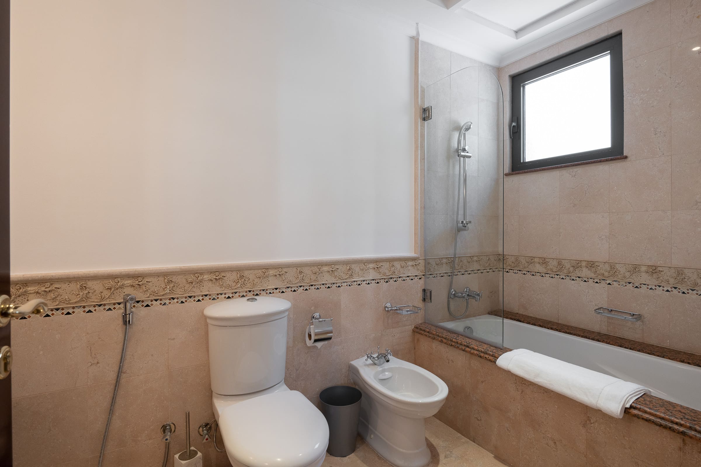 Step into a realm of modern elegance as you enter this exquisite apartment. The interior design is a harmonious blend of contemporary style and comfort, featuring bright, airy spaces accentuated by large windows that flood the rooms with natural light. Each of the six bedrooms boasts its own ensuite bathroom, with the master suite offering a Jacuzzi tub for ultimate relaxation. The open-plan living area, adorned with striking artwork and lush houseplants, provides a perfect setting for both entertaining and unwinding. The fully equipped kitchen, with top-tier appliances, ensures a seamless culinary experience.