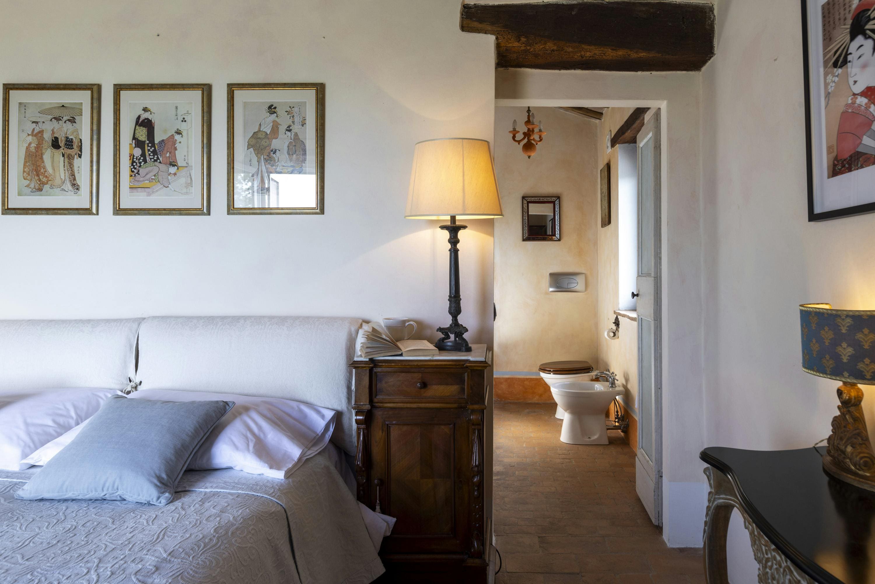 Step into the warm and inviting ambiance of this beautifully restored farmhouse. The interior exudes rustic charm with exposed wooden beams and traditional Italian decor, creating a cozy atmosphere. The open-plan living area features comfortable seating and a dining space, ideal for relaxed gatherings. The fully equipped kitchen allows for culinary adventures, while the two en-suite bedrooms provide restful sanctuaries. Each bedroom is thoughtfully designed with comfort in mind, featuring plush bedding and modern amenities. A third bathroom ensures convenience for all guests.