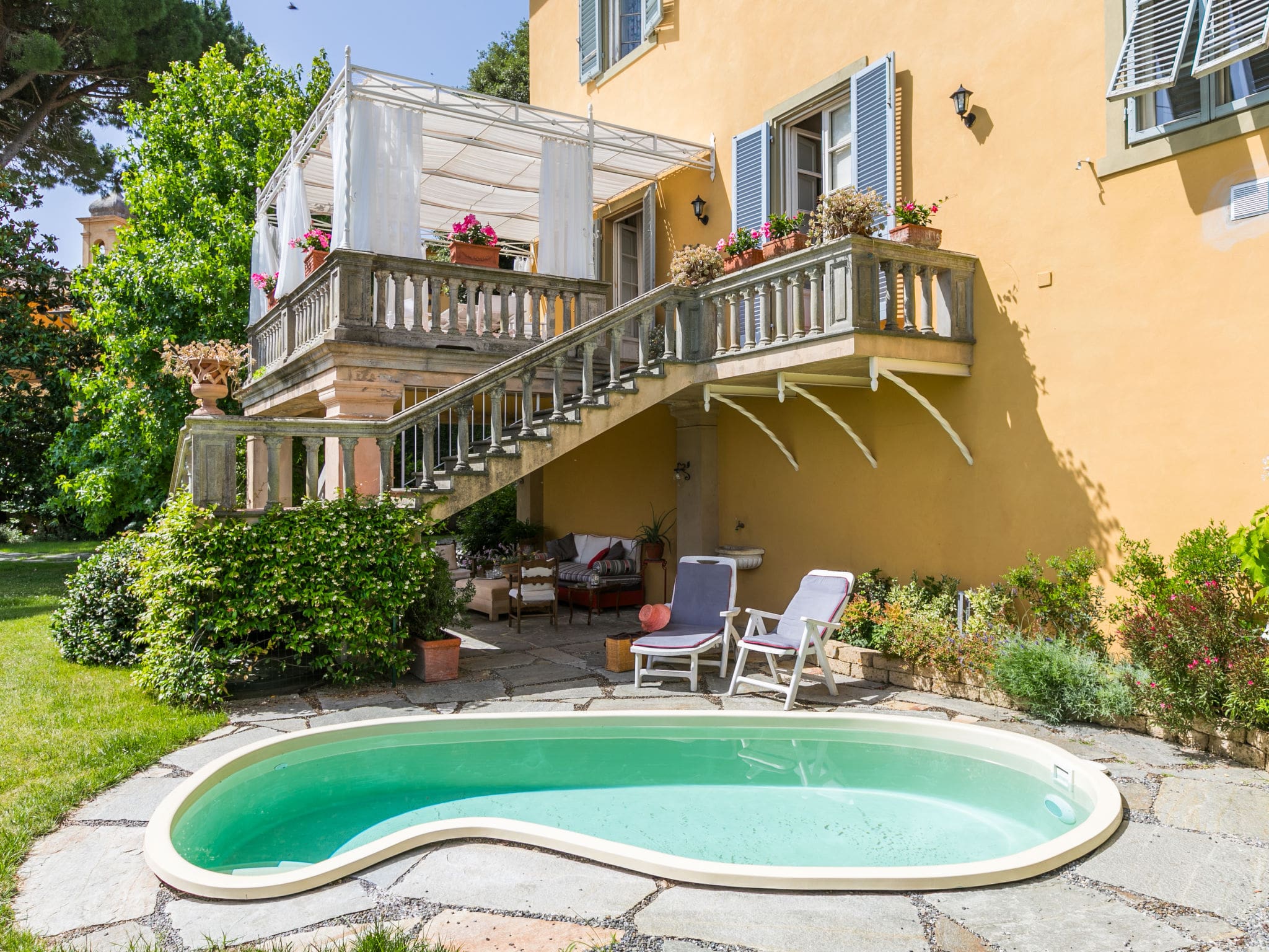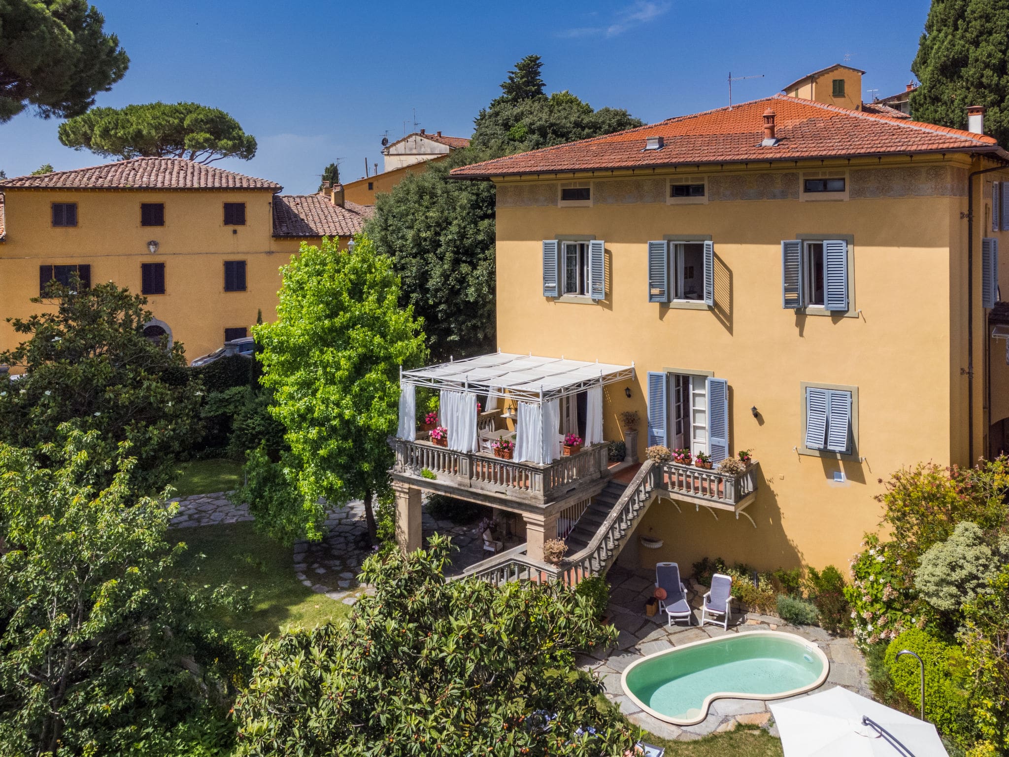Experience the finest luxury villa rental Tuscany Italy has to offer at this magnificent Art Nouveau residence perched on the edge of the medieval village of Lari. This distinguished 5-bedroom villa combines period elegance with modern comfort, featuring original frescoes, antique furnishings, and a private kidney-shaped pool set within beautiful landscaped gardens overlooking the rolling Tuscan countryside.