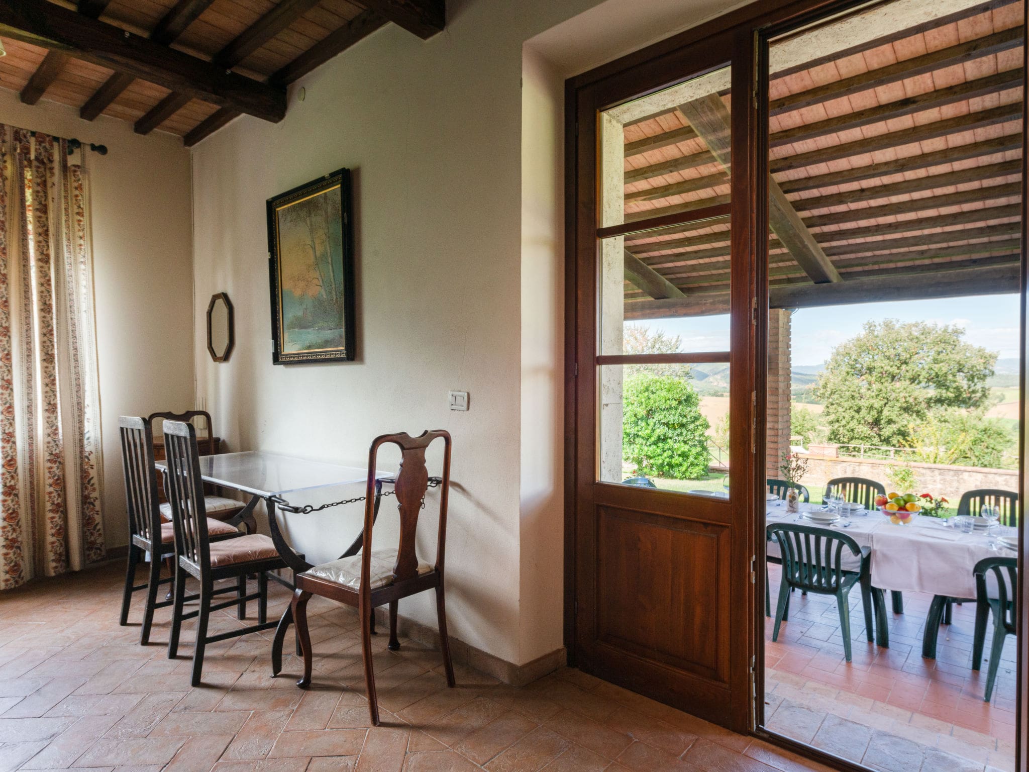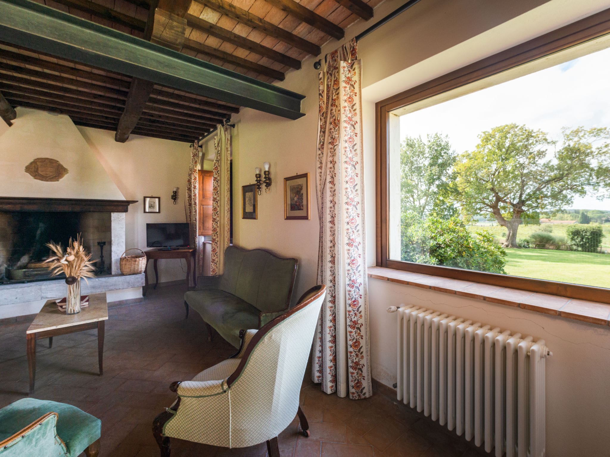 The villa’s outdoor spaces truly capture the magic of Tuscan country living. The private 14×7-metre swimming pool takes centre stage, available from late May through early October, surrounded by manicured gardens spanning 1,500 square metres. Multiple covered terraces provide shade for al fresco dining, equipped with quality outdoor furniture and a barbecue for memorable evenings under the stars.