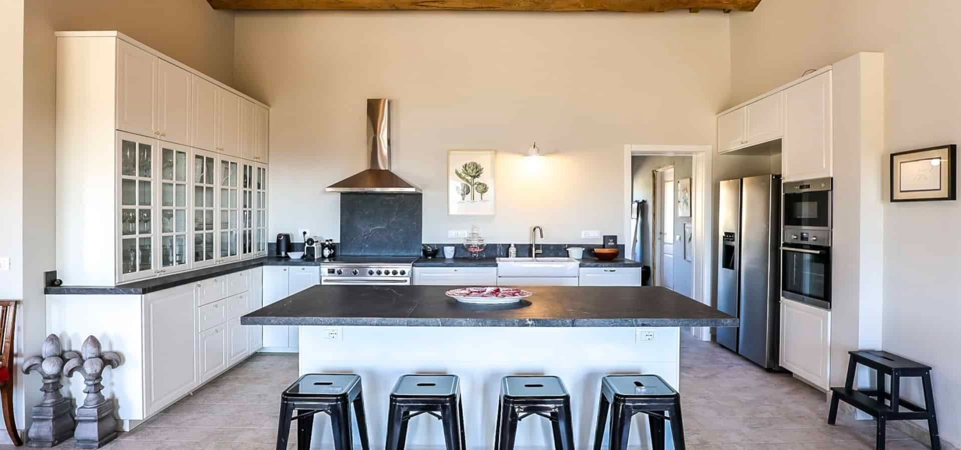 As you step inside, you are greeted by an elegant interior that seamlessly marries classic Tuscan elements with contemporary comforts. The spacious living areas are adorned with plush furnishings, offering a warm and inviting ambiance. Each of the seven bedrooms is a sanctuary of comfort, featuring en-suite bathrooms and tasteful décor. The fully equipped kitchen is a culinary haven, perfect for those who wish to indulge in their own cooking or enjoy meals prepared by a private chef.