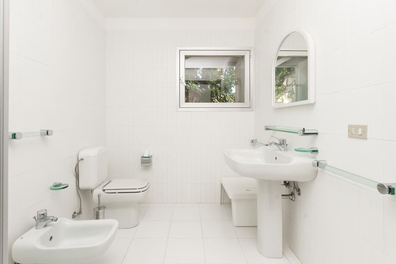 The villa’s outdoor spaces are as inviting as its interiors. Enjoy the Mediterranean sun from the terrace or cool off in the swimming pool, which is shaded by lush trees. The villa’s garden offers a serene spot to unwind, with panoramic views of the Ligurian Sea providing a stunning backdrop for outdoor dining and relaxation.