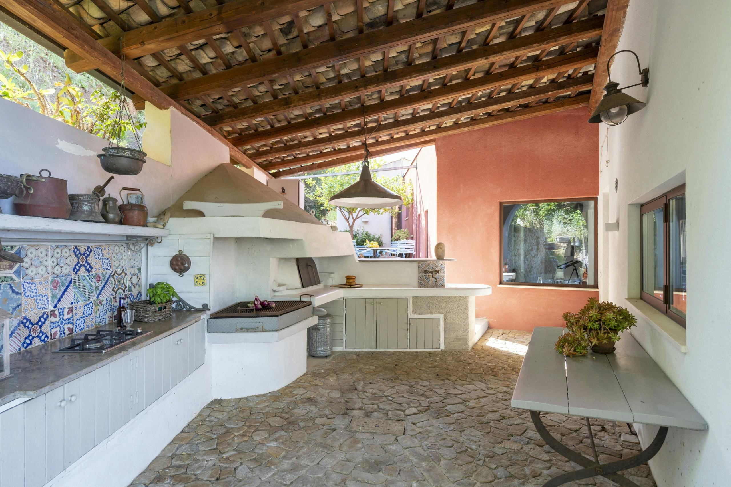 The outdoor spaces of Villa Rocca Cefalù are nothing short of spectacular. The private swimming pool, open from May to October, is perfect for a refreshing dip, while the surrounding terraces offer multiple spots for sunbathing or sipping cocktails at sunset. An outdoor wood-fired oven sets the stage for delightful alfresco dining experiences. The villa’s hillside location provides sweeping vistas of the Sicilian coastline, ensuring every moment is accompanied by the beauty of the Mediterranean.