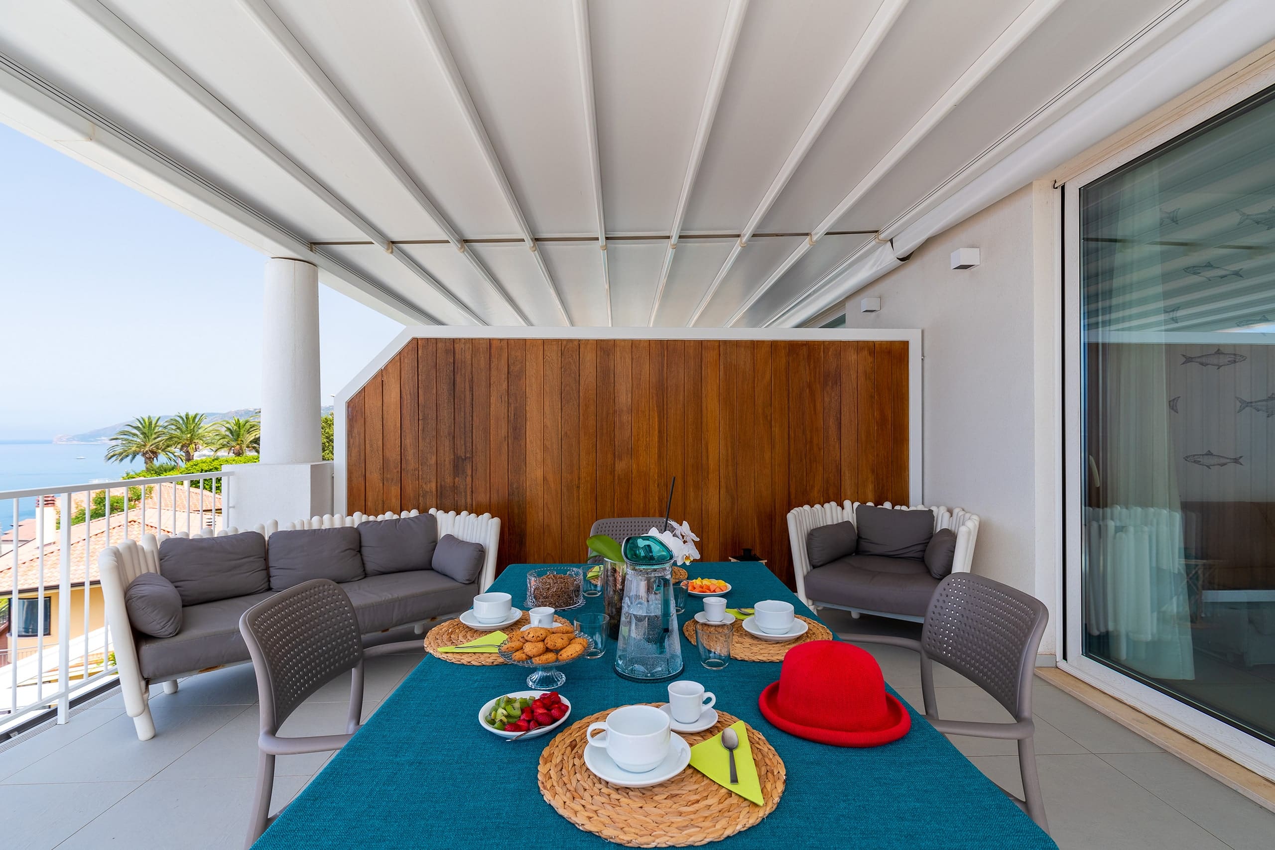The outdoor spaces of the villa are nothing short of spectacular. Relax by the private swimming pool, surrounded by lush gardens that provide a serene backdrop for your stay. The terrace, equipped with comfortable seating and dining areas, offers the ideal spot for al fresco meals while enjoying the panoramic sea views. Whether you’re sipping a glass of wine at sunset or enjoying a leisurely breakfast, the outdoor spaces here are designed to enhance your relaxation.