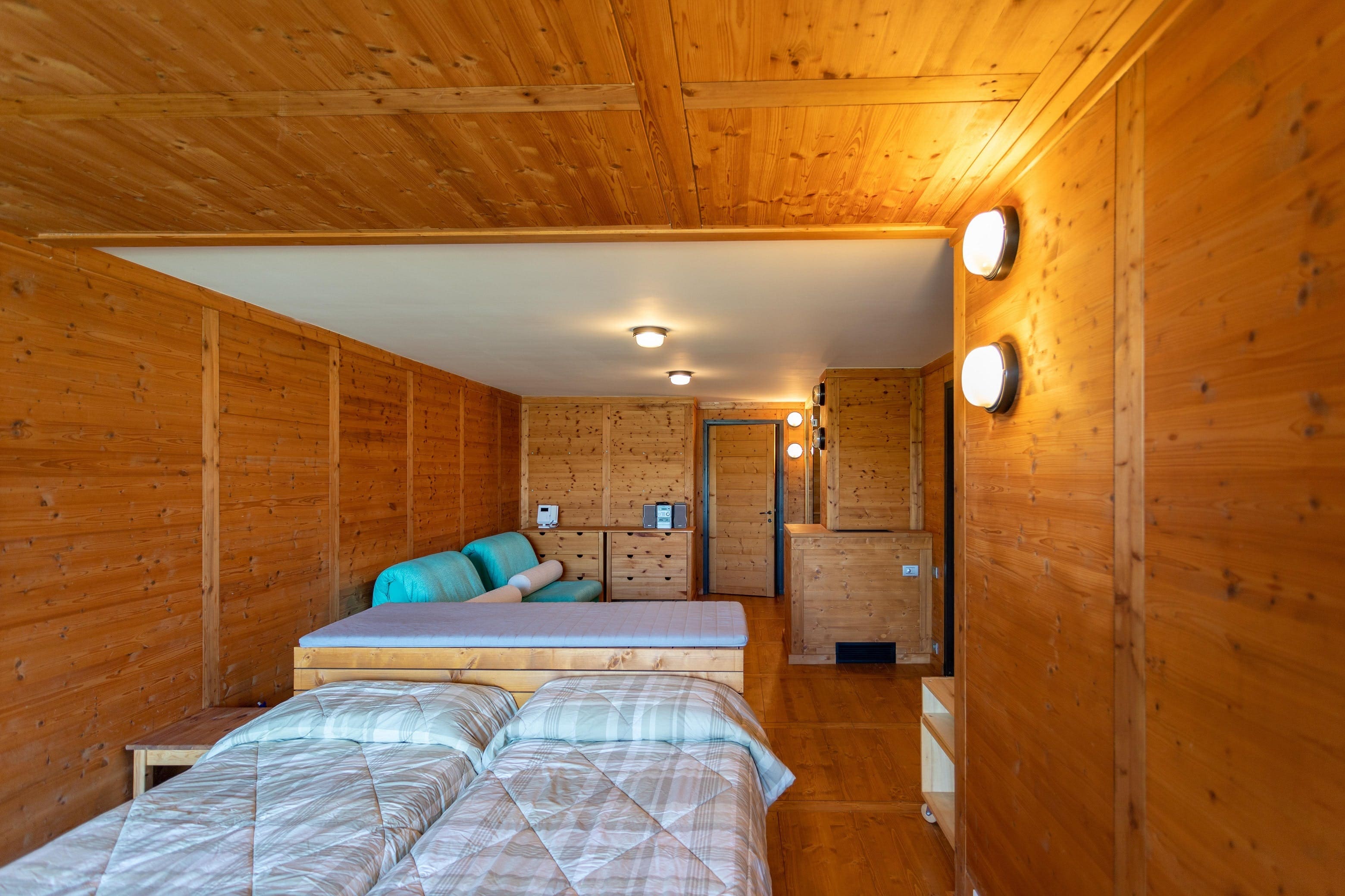 The villa’s interior showcases refined Italian design with contemporary touches throughout its four spacious bedrooms and four bathrooms. The upper-level living room captivates with soaring ceilings and thoughtfully curated furnishings that frame stunning lake vistas, while a gourmet kitchen equipped with premium appliances invites culinary adventures. The ground-floor master suite stands out as a particular highlight, featuring direct garden access and an en-suite bathroom with garden-view windows. Bedroom four includes an indulgent private sauna, perfect for unwinding after days spent exploring the surrounding Alps.