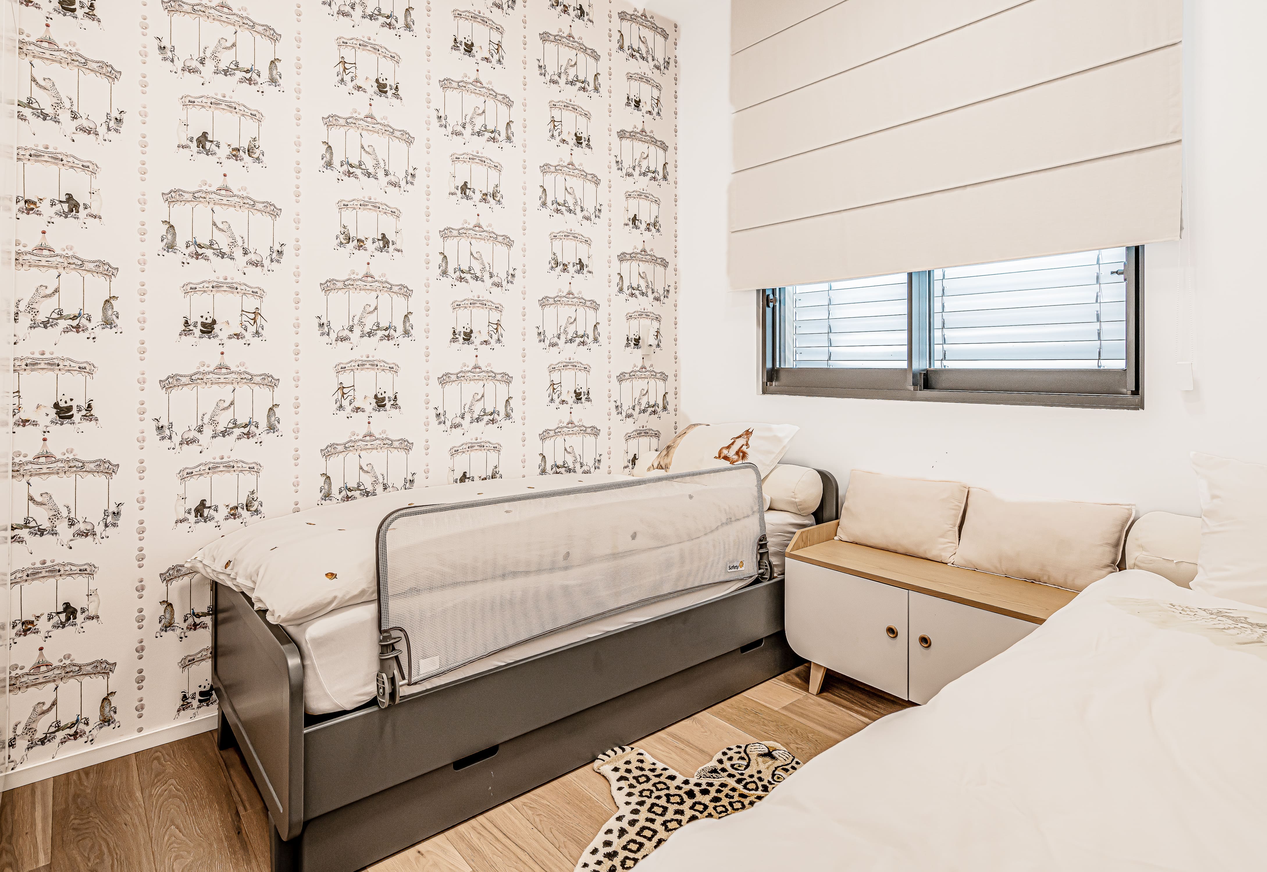 Step inside this magnificent villa to discover a world of sophistication. With five spacious bedrooms and three well-appointed bathrooms, the villa comfortably accommodates up to seven guests. The open-plan living area, featuring sleek modern furnishings and an abundance of natural light, seamlessly transitions into a fully equipped kitchen and dining space. Whether you’re preparing a family meal or enjoying a quiet evening in, the villa’s interior is designed for both relaxation and entertainment. One of the single rooms offers a charming day bed, perfect for a child.