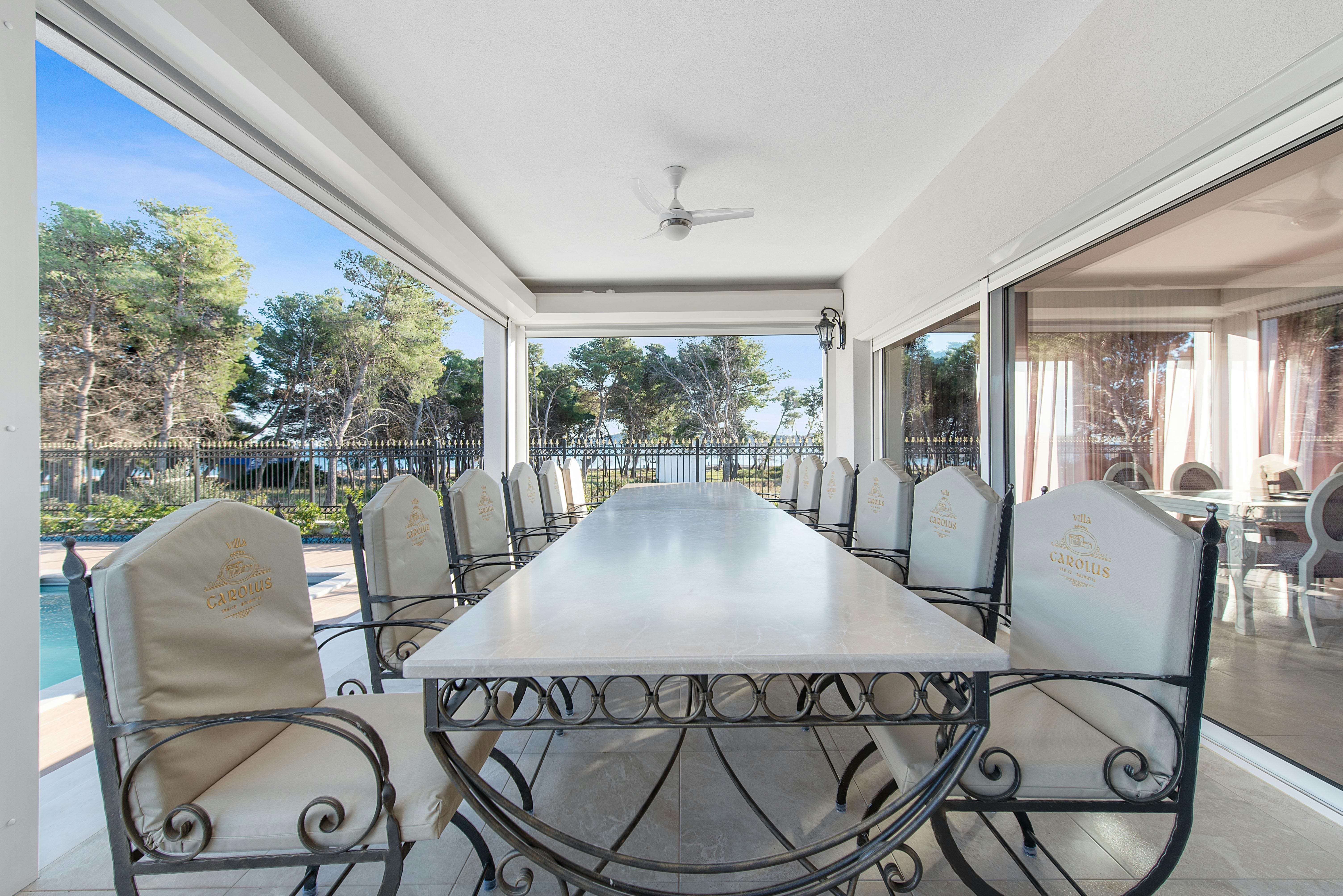 The outdoor areas of this luxury villa rental are truly exceptional. A stunning swimming pool invites you to take a refreshing dip while soaking up the Croatian sun. Surrounding the pool, you’ll find ample sun loungers and a shaded terrace, perfect for al fresco dining or enjoying a cocktail as the sun sets. The villa offers picturesque sea views, enhancing your outdoor experience and providing a serene environment to unwind.