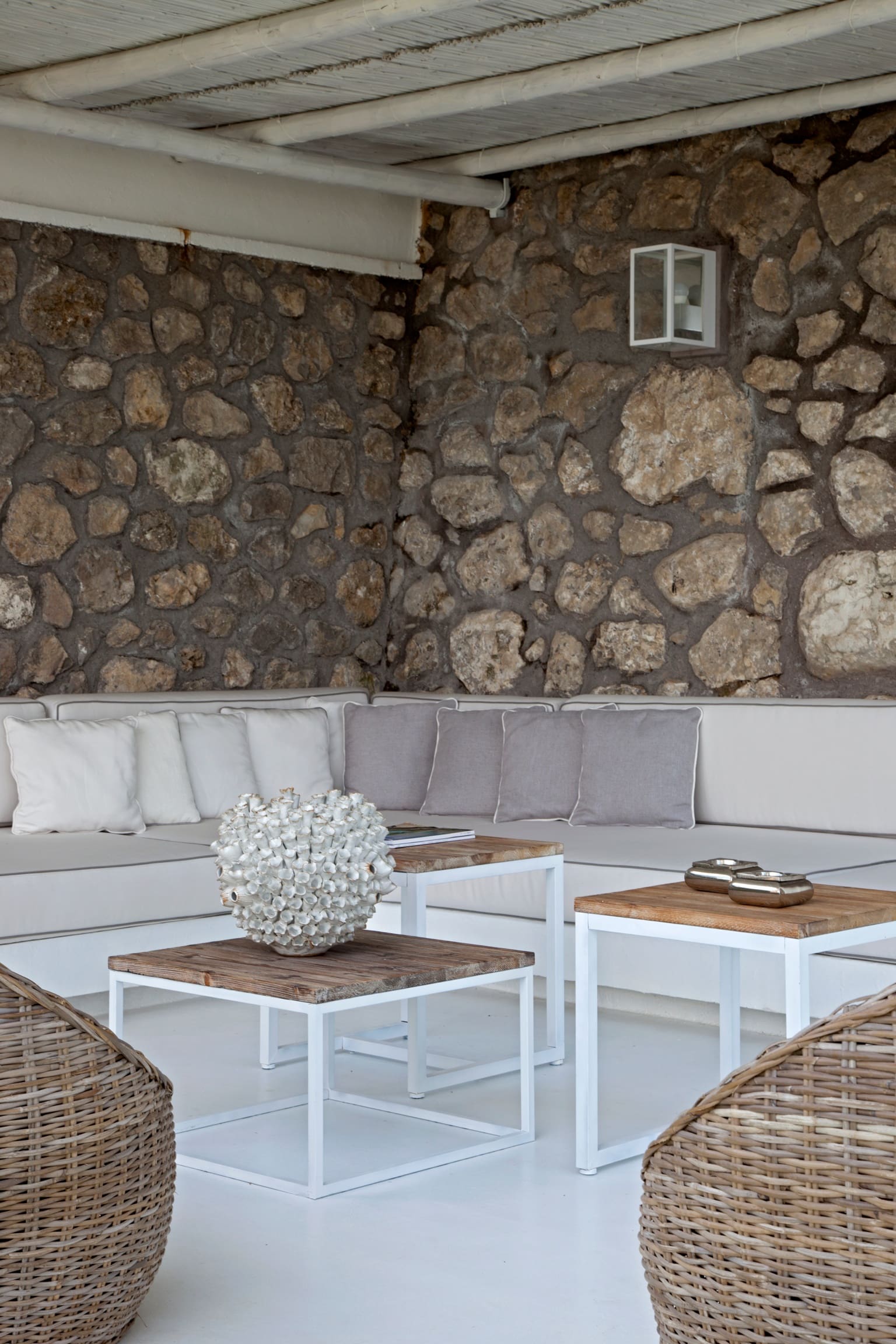 Step inside this luxurious villa and be greeted by a modern and stylish interior that perfectly complements its idyllic setting. The villa features expansive arched windows that frame breathtaking sea views, inviting natural light to fill the space. The open-plan living area is elegantly furnished, providing a comfortable space for relaxation and entertainment. The villa’s bedroom is a tranquil haven, promising restful nights with its plush bedding and serene ambiance. Thoughtfully designed, the villa ensures every guest enjoys comfort and sophistication.