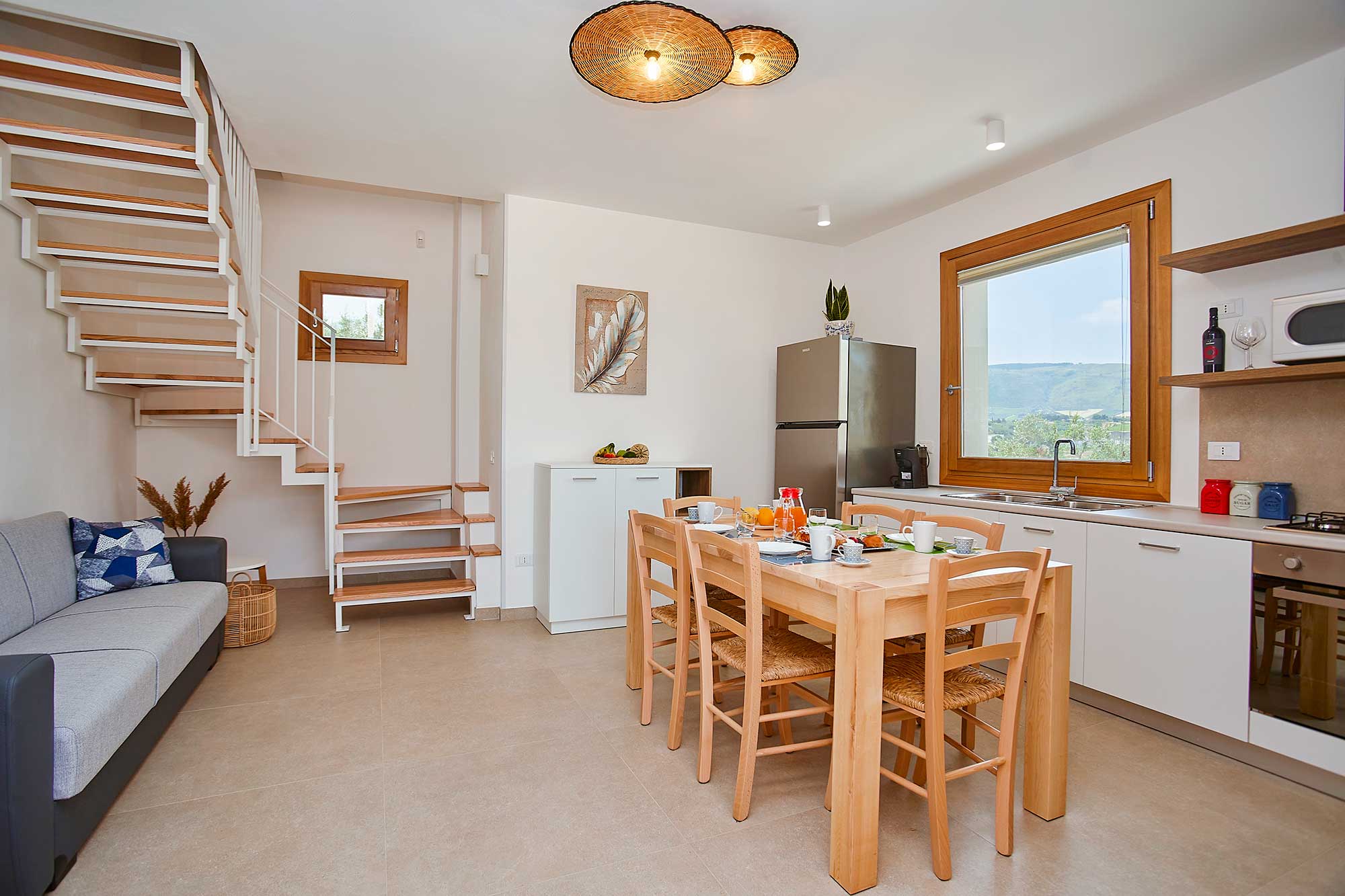 Step inside Villa Sirocco, where contemporary design meets traditional Sicilian architecture. The villa is spread across four floors, providing ample space for guests to relax. The bright and airy living areas boast elegant furnishings and modern amenities, ensuring a comfortable stay. The fully equipped kitchen is perfect for preparing local delicacies, while the two beautifully appointed bedrooms offer a restful retreat. Please note, at full occupancy, two guests will be accommodated on pull-out single beds in the twin room, making it ideal for families with children.