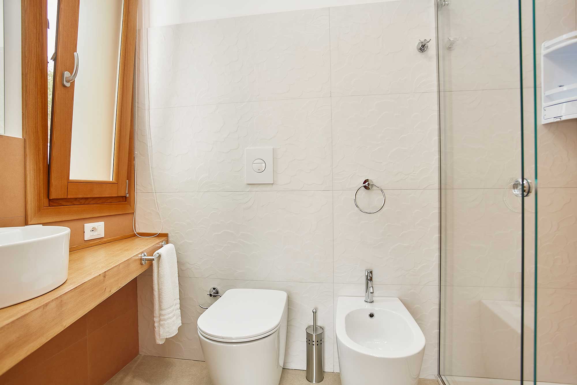 The villa accommodates up to six guests across two bedrooms and two bathrooms. The property includes a laundry room located in the basement, accessed via a ramp adjacent to the main entrance. Please note, due to the layout, it may not be suitable for those with limited mobility. Browse our luxury villa rentals in Italy for more properties.