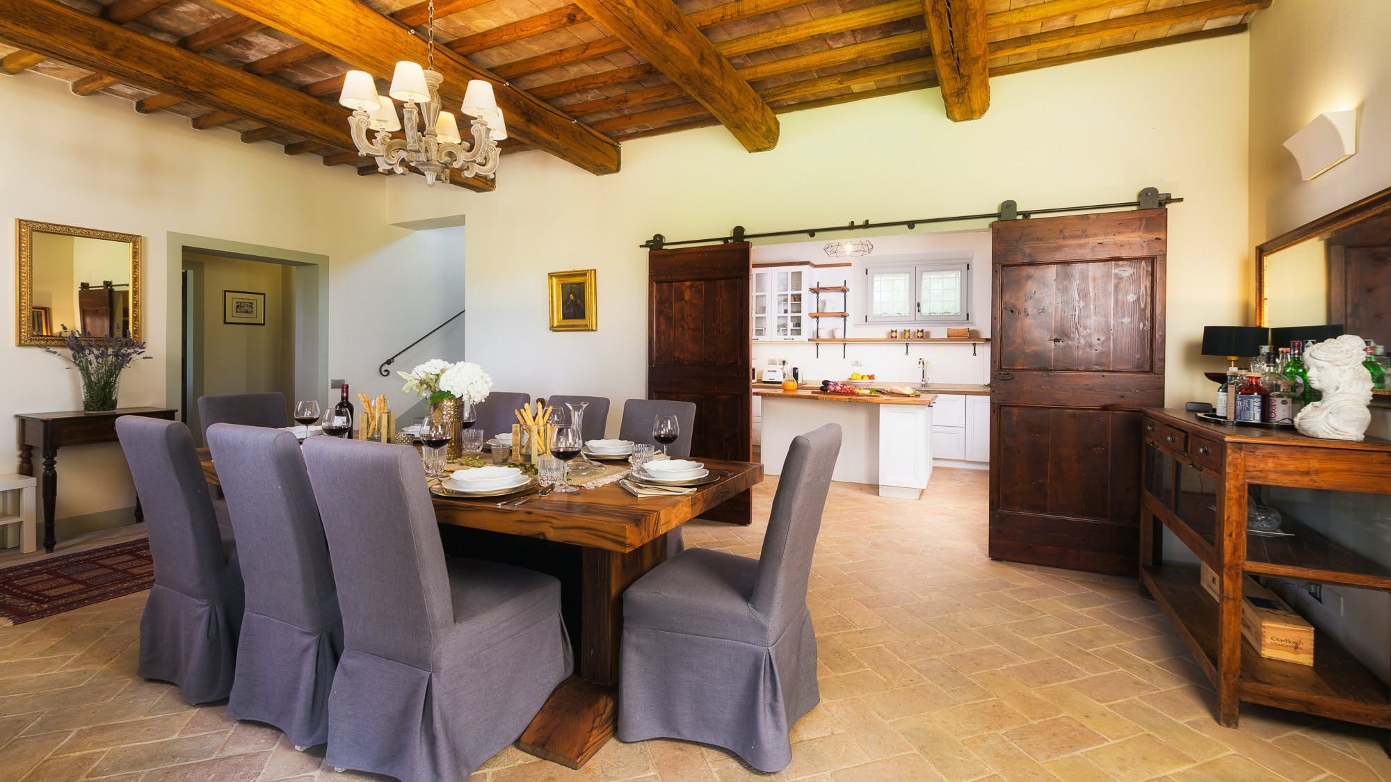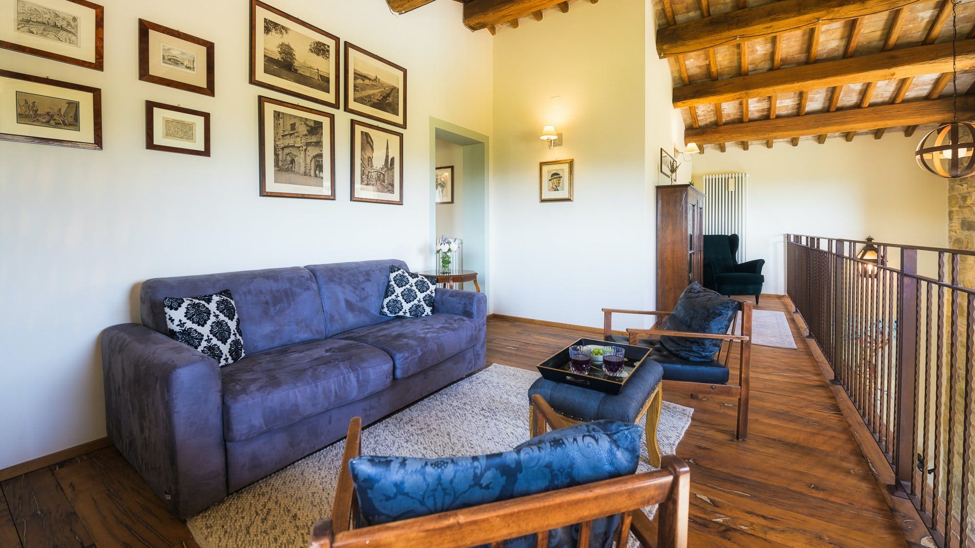 Step inside Villa Subasio and be greeted by an interior that seamlessly combines traditional charm with modern comforts. The villa boasts four elegantly furnished bedrooms, each with its own en-suite bathroom, ensuring privacy and convenience for all guests. The spacious living area, with its exposed wooden beams and classic stone fireplace, invites you to unwind in style. The fully equipped kitchen is perfect for preparing meals with locally sourced ingredients, while the dining area offers a picturesque view of the surrounding landscape. A mezzanine level features a cozy sofa bed, ideal for children, though privacy is somewhat limited.