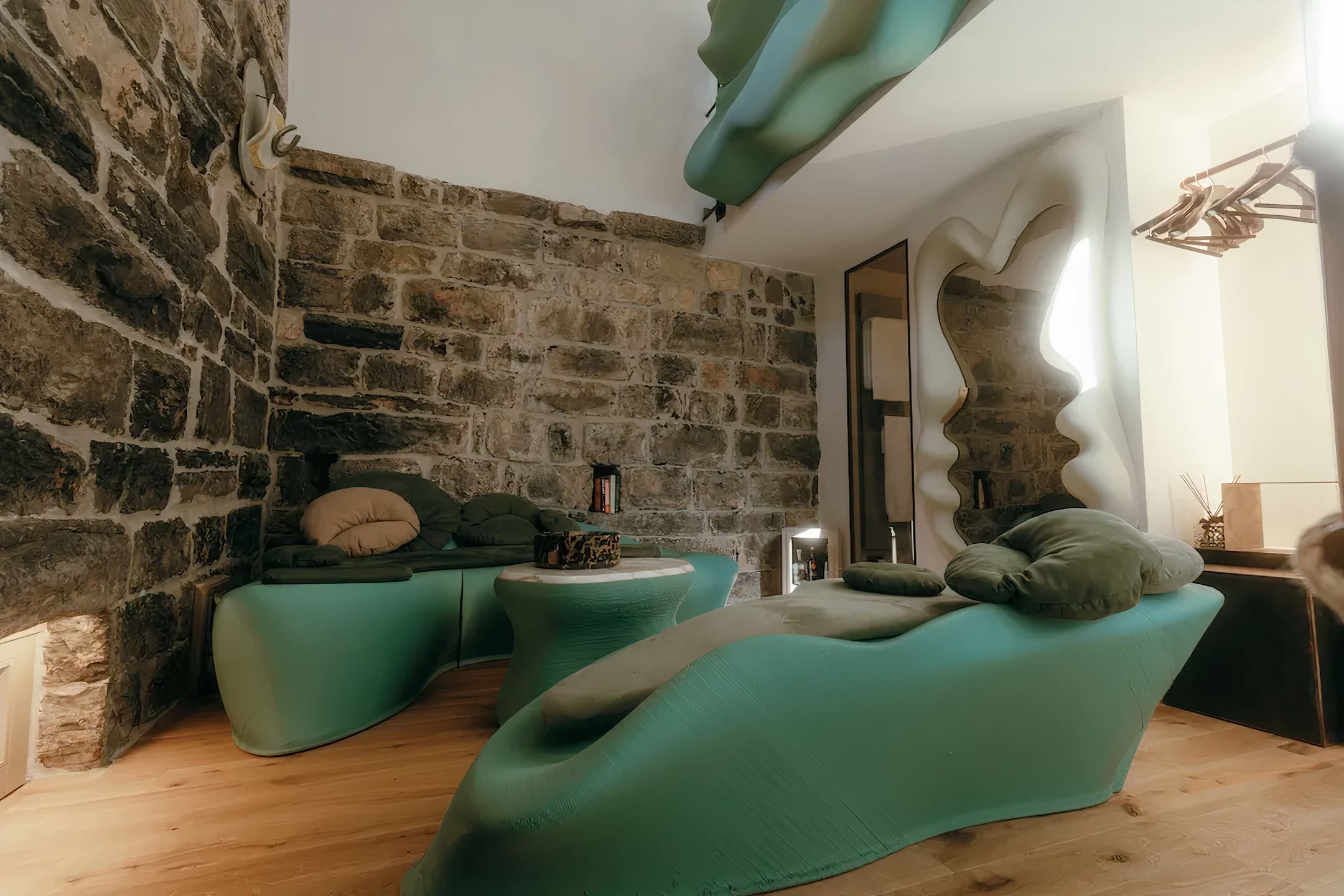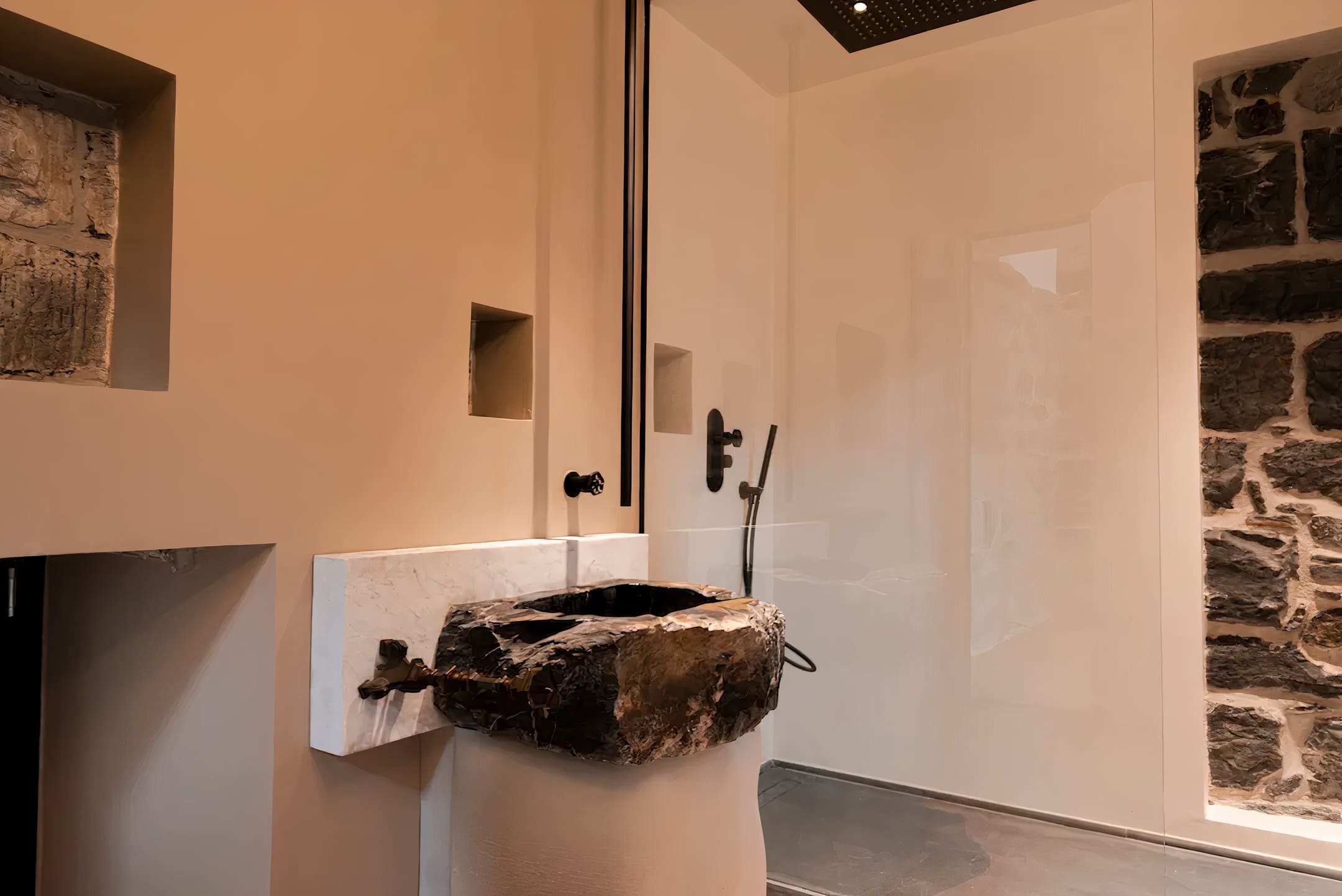 Step inside to discover a thoughtfully designed space that perfectly captures the essence of Cinque Terre. The villa spans three floors, each connected by steep stairs. The living area features a Jacuzzi bath integrated into the space, creating an intimate setting for relaxation. The semi-open mezzanine bedroom provides a cozy retreat, and while the kitchen isn’t photographed, expect it to match the style and quality of the home. Daily breakfast, bottled water, and sweet treats are complimentary, adding to the luxurious experience.