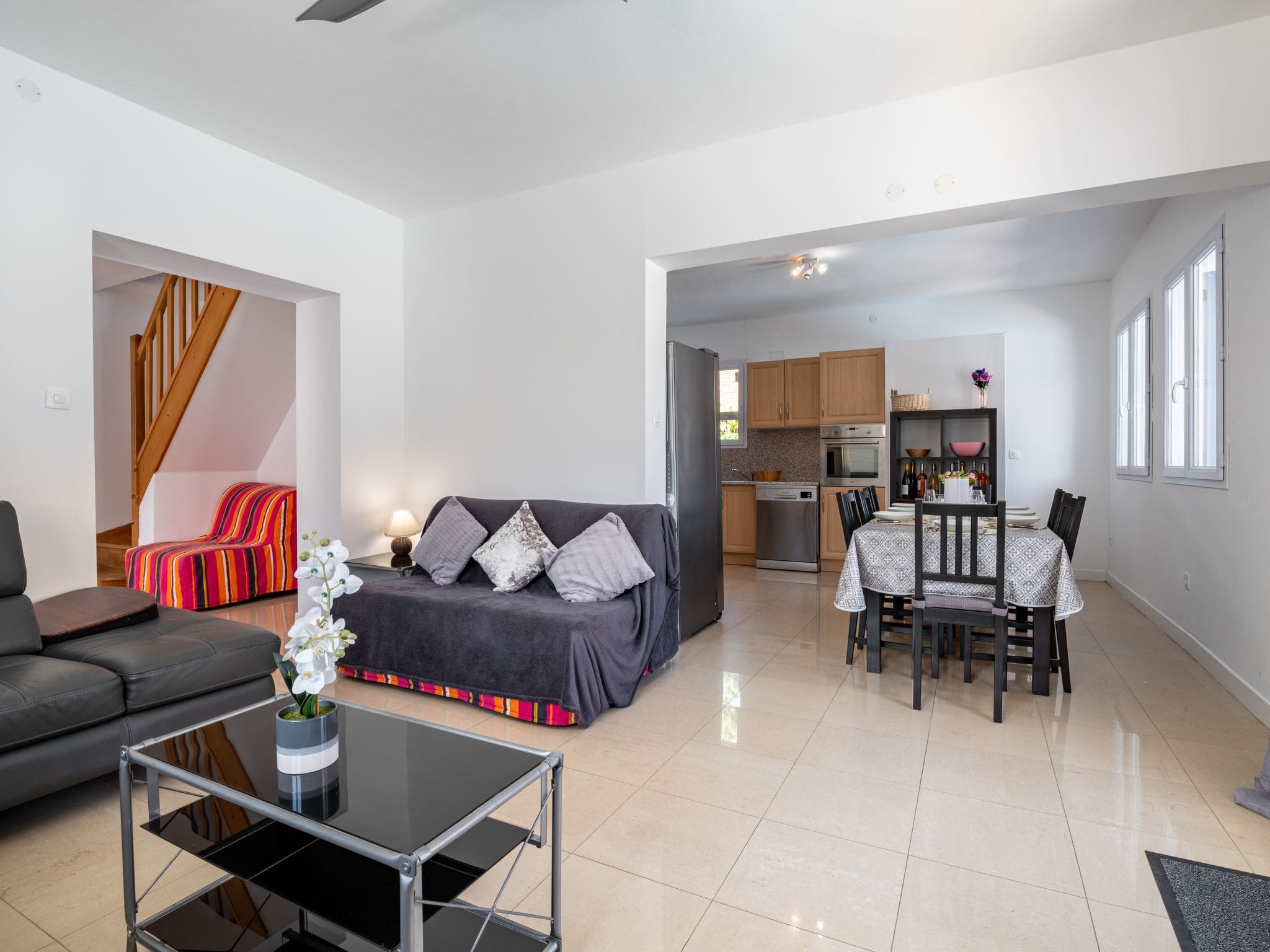 Spread across two elegant levels, this 130-square-metre villa presents a masterful blend of practical design and sophisticated style. The ground floor welcomes you with an expansive living and dining area, seamlessly flowing onto a magnificent west-facing terrace that captures the golden Mediterranean light throughout the day. The fully equipped kitchen features premium appliances including dishwasher, microwave, and electric coffee machine, ensuring effortless meal preparation. A comfortable double bedroom with fan and shower room complete the ground floor accommodation.