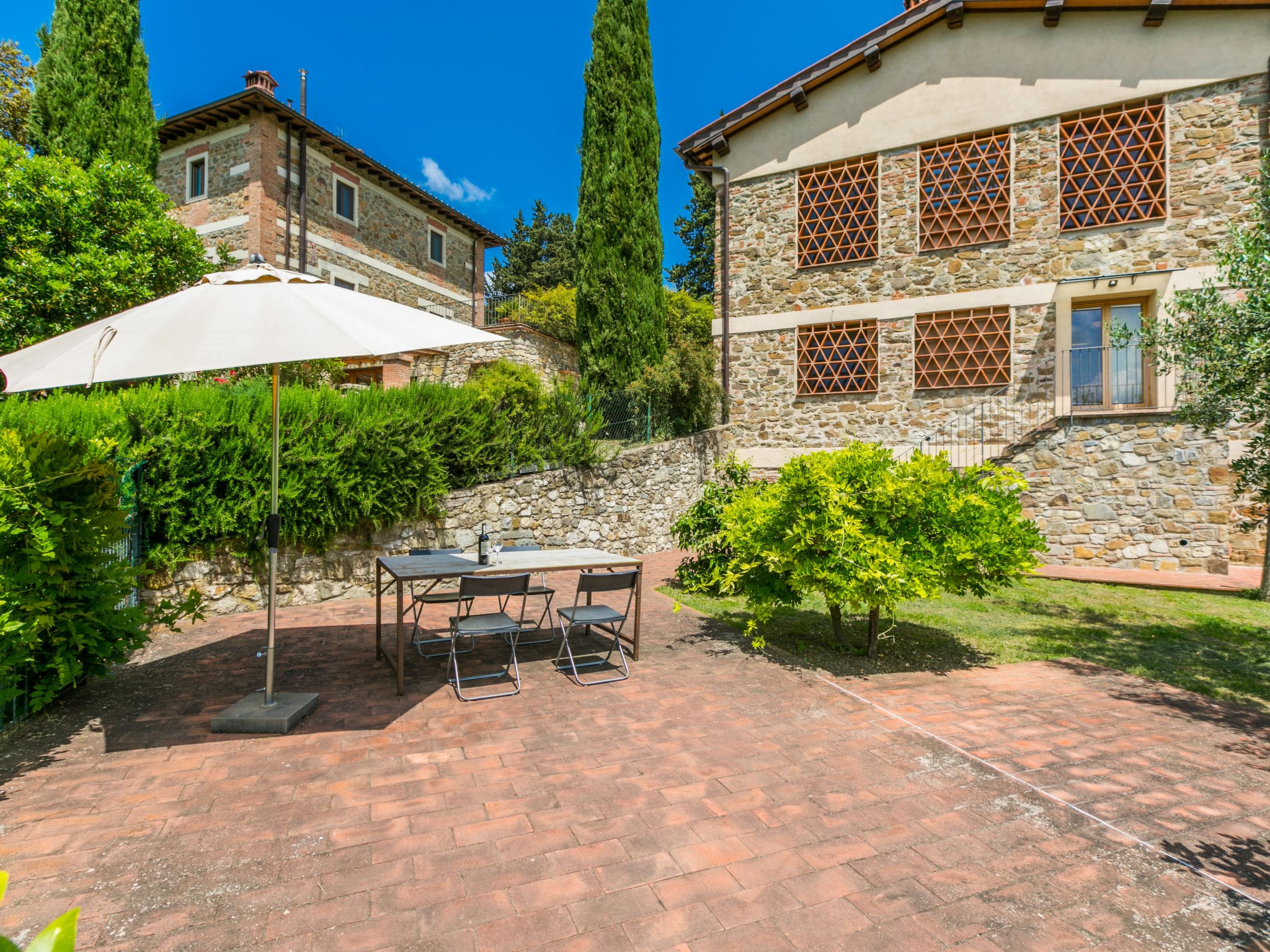 The expansive 10,000 square metre property features terraced gardens adorned with mature trees, creating natural shade and privacy. Multiple outdoor dining areas equipped with barbecue facilities invite al fresco meals overlooking the panoramic countryside vistas. The large private terrace adjacent to the main house extends the living space outdoors, perfect for morning coffee or evening aperitivos while watching the sun set over the Chianti hills.