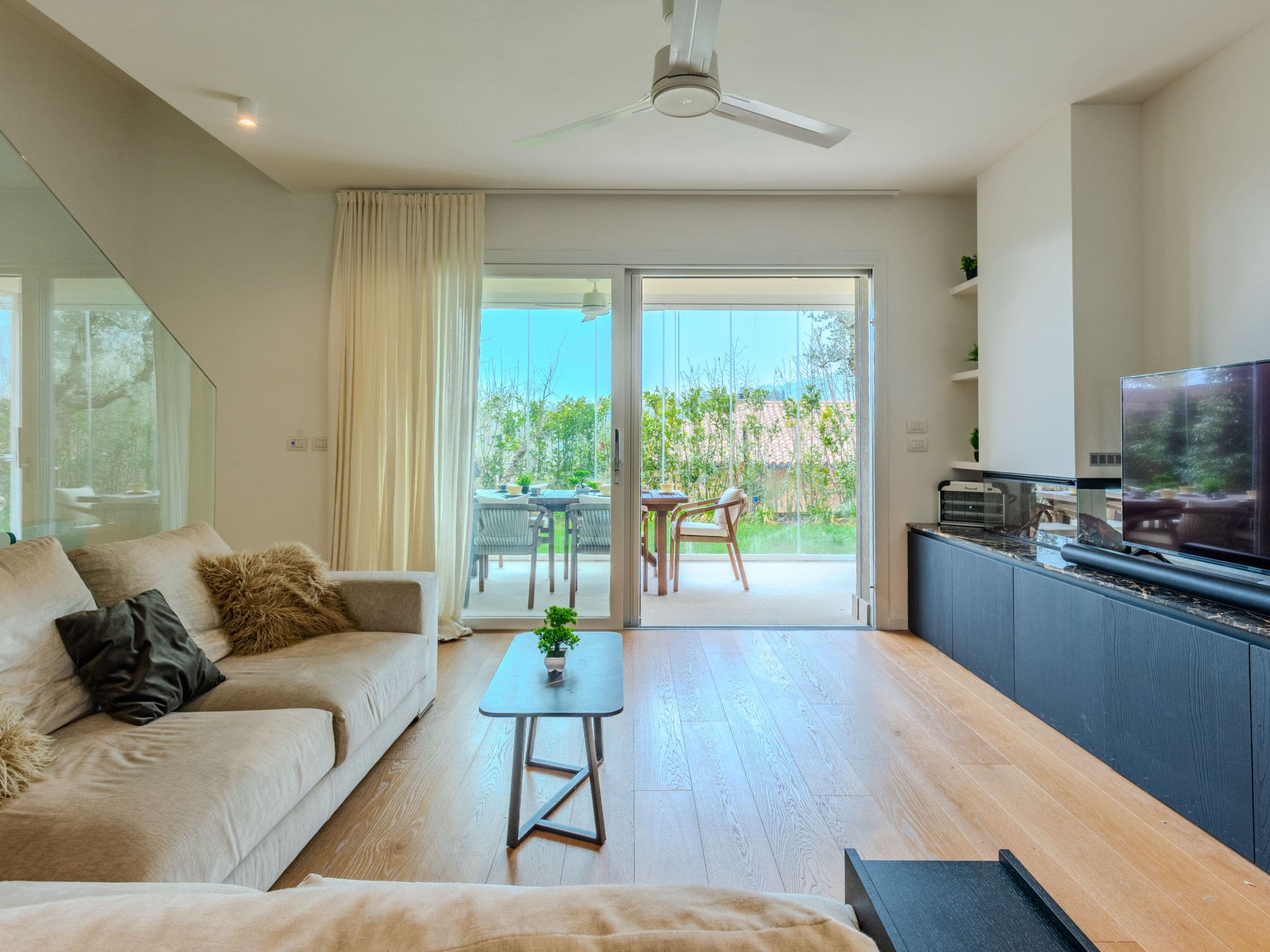 The property includes a covered garage for two vehicles and dedicated storage for bicycles, making it easy to explore the surrounding Lake Garda region. The south-east facing position ensures excellent natural light throughout the day, while the elevated location provides stunning panoramic views across the local golf course and rolling countryside.