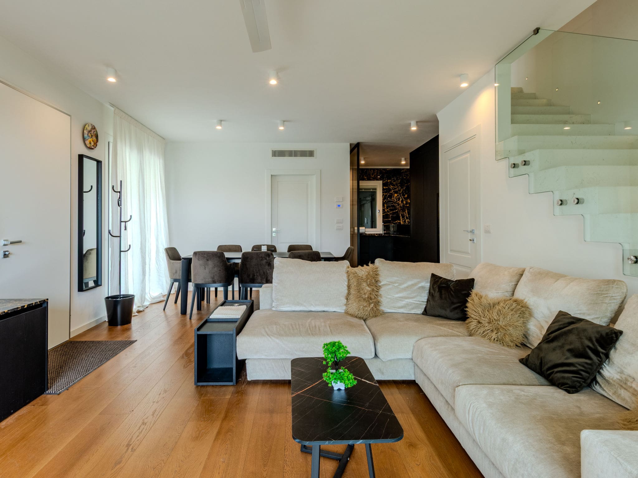 Spread across two elegantly designed levels, this 161m² villa showcases contemporary luxury throughout its spacious interiors. The ground floor features a bright, open-plan living and dining area with sleek furnishings and a flat-screen television, creating an inviting space for relaxation and entertainment. The modern kitchen comes fully equipped with premium appliances including an induction hob, dishwasher, microwave, and Nespresso coffee machine, perfect for preparing everything from quick breakfasts to elaborate Italian feasts.