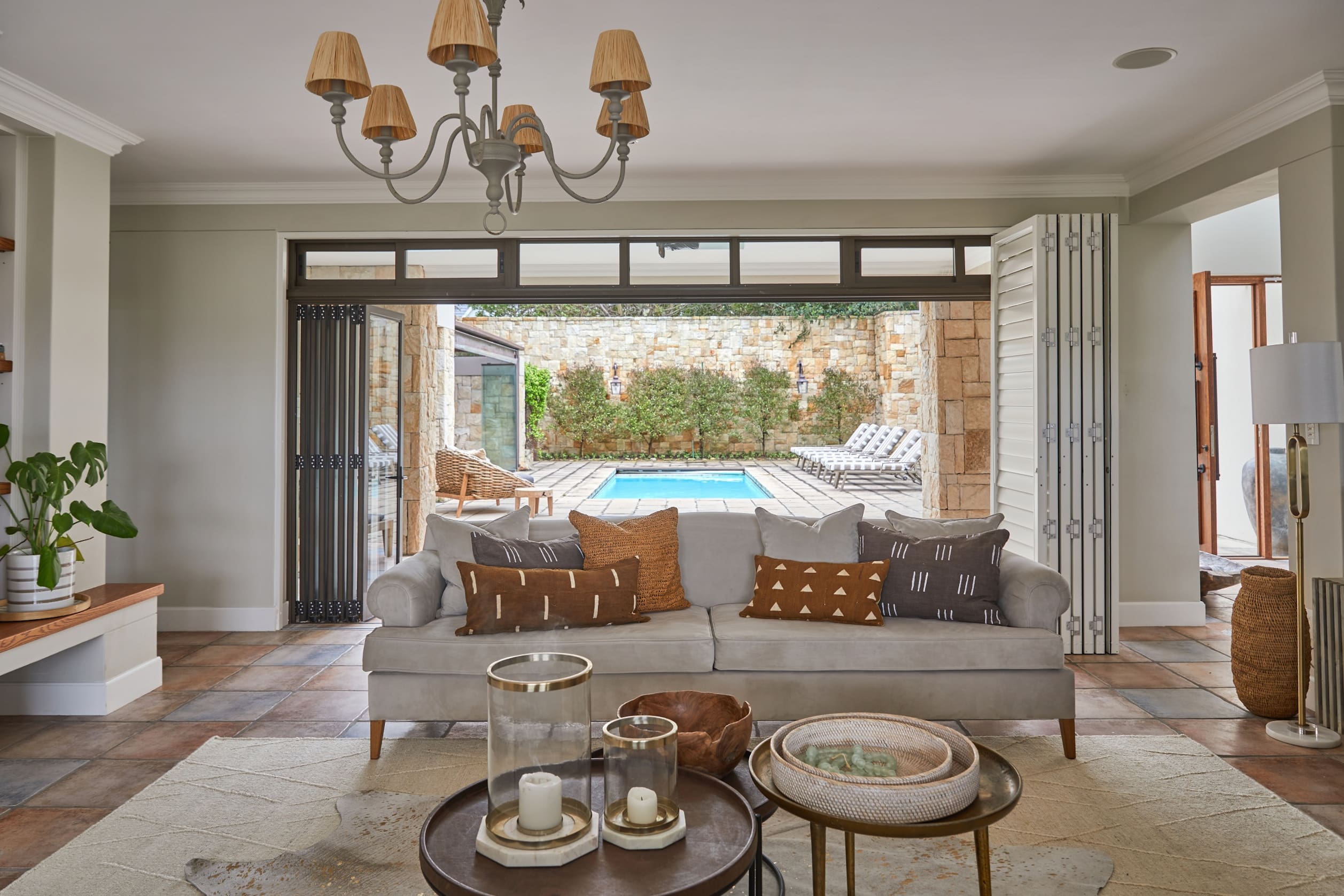 This luxury villa rental Cape Town accommodates 14 guests across six en-suite bedrooms, with secure parking for two standard vehicles or three compact cars available on-site. Additional parking spaces can be found directly across the road when needed. The property requires a minimum three-night stay and welcomes children of all ages, making it ideal for extended family gatherings or group celebrations. Explore our complete portfolio of luxury villa rentals in South Africa for more exceptional properties.