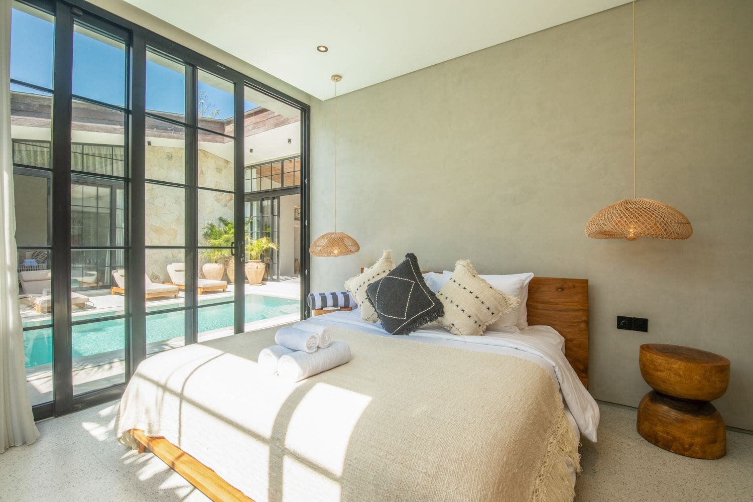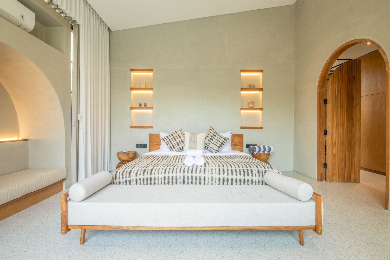 Retreat to one of the five exquisite bedrooms, each offering a king-size bed for ultimate comfort. Enjoy private access to terraces and luxurious en-suite bathrooms showcasing outdoor bathtubs and walk-in showers, inviting you to unwind in style.