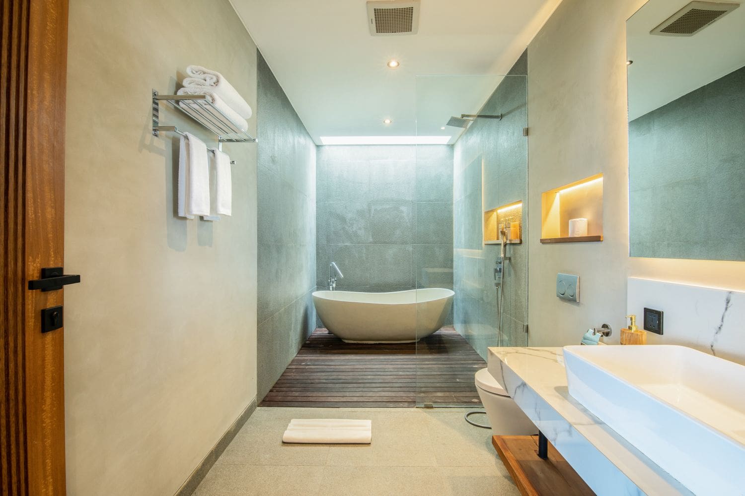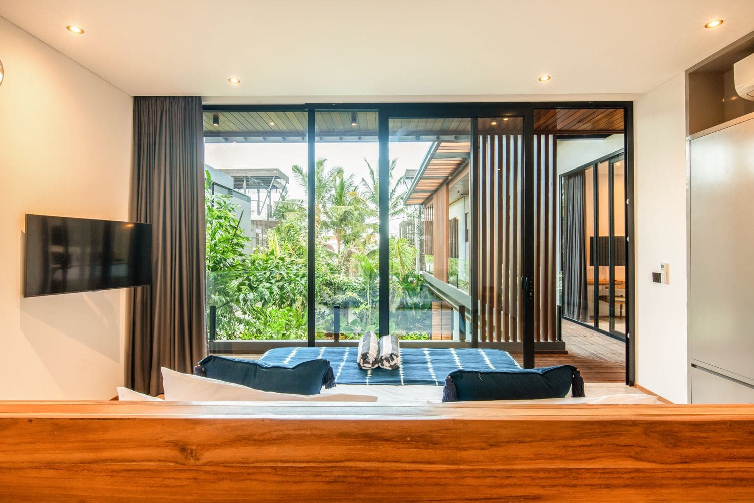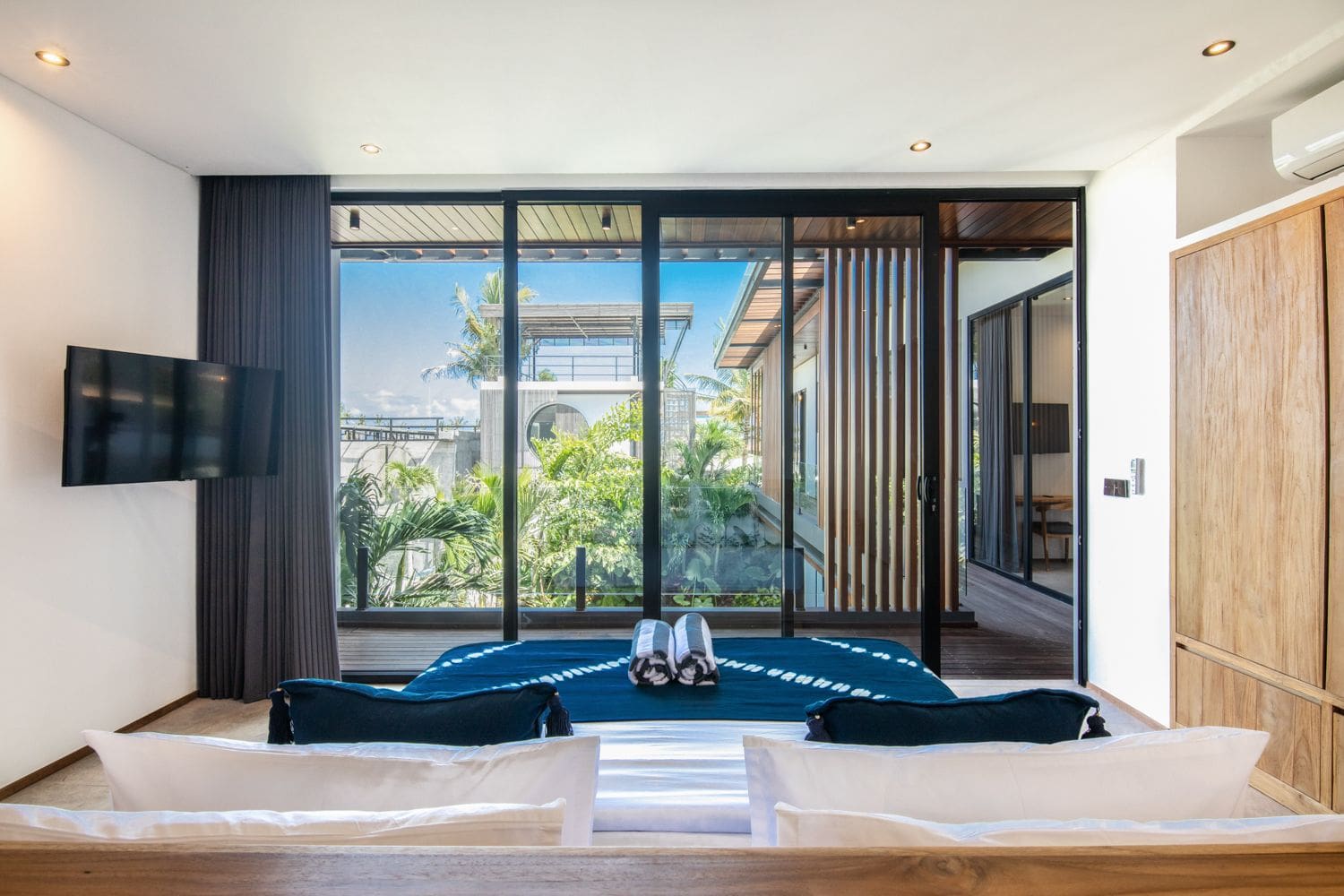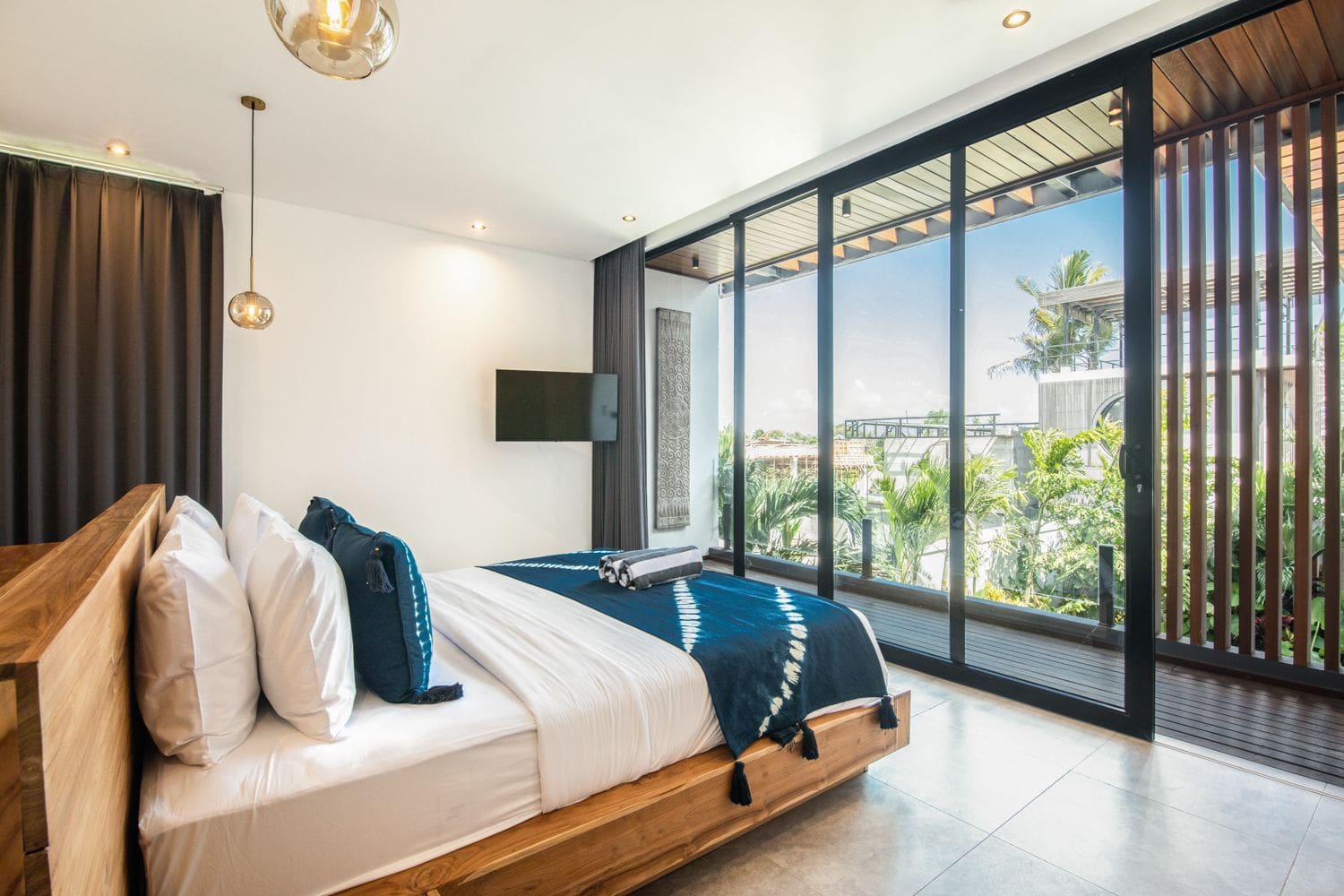 Immerse yourself in contemporary luxury as you enter a thoughtfully designed living space, featuring air-conditioning and a seamless flow of natural light, creating an inviting atmosphere. The fully equipped modern kitchen caters to culinary enthusiasts, while each of the five spacious bedrooms is a sanctuary of comfort, complete with a king-size bed, ensuite bathroom, smart TV, and stunning garden views. Indulge in the lavish master suite, showcasing a luxurious freestanding bathtub, perfect for unwinding after an adventurous day exploring the enchanting island of Bali.