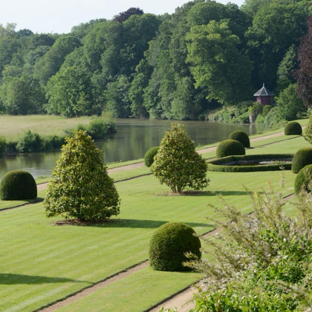 The lower gardens were reimagined in the 19th century by celebrated landscaper Édouard André, blending formal French parterres with the softer English landscape style.