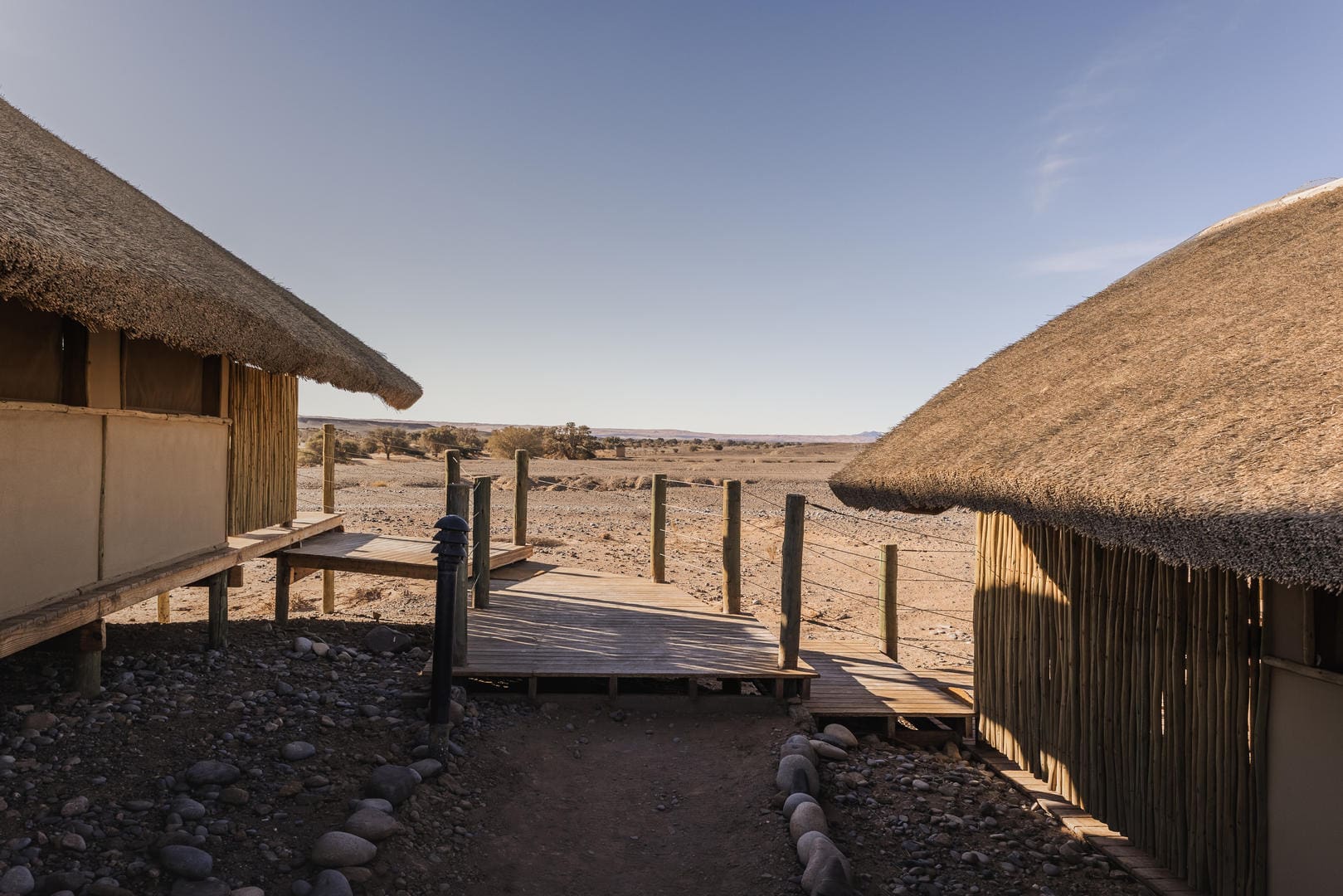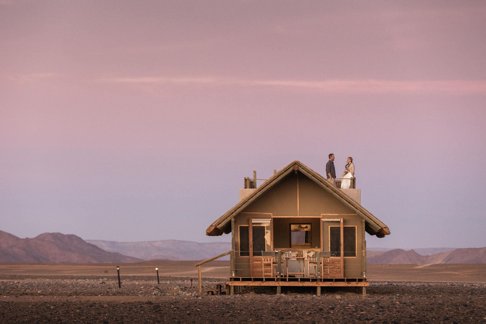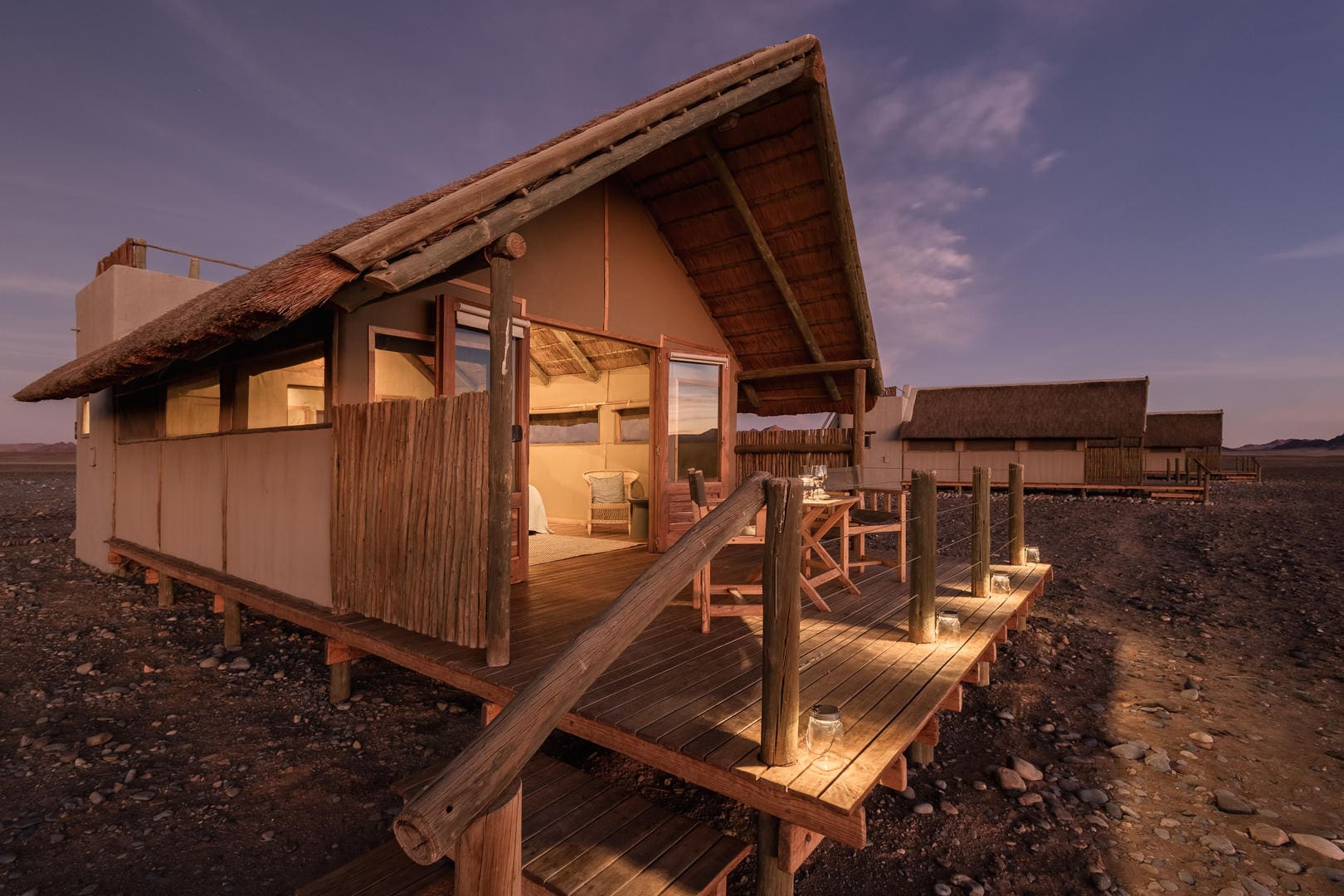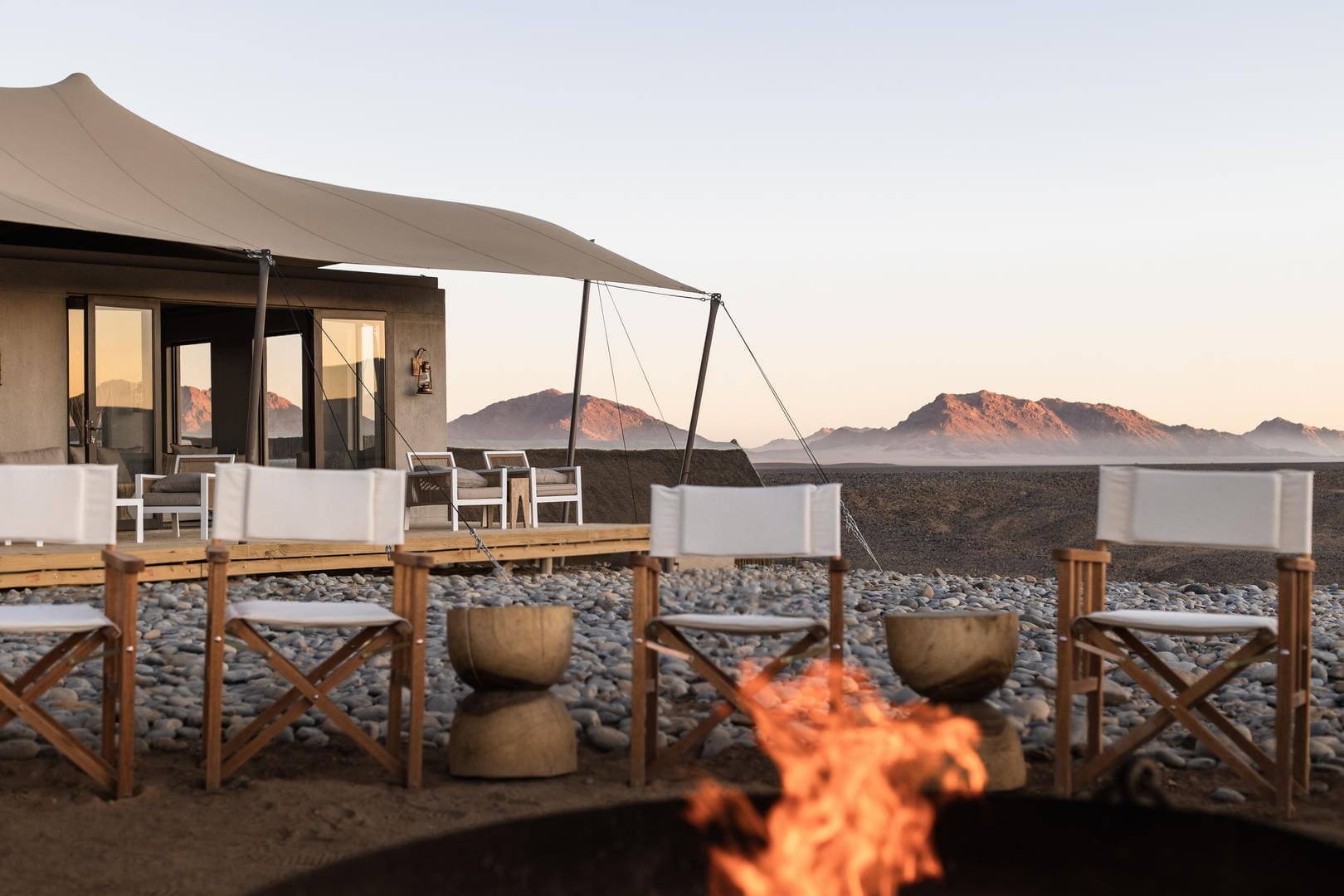 Sleep-Out Experience: Private rooftop areas behind each tent provide an exclusive stargazing experience under Namibia’s crystal-clear desert skies.