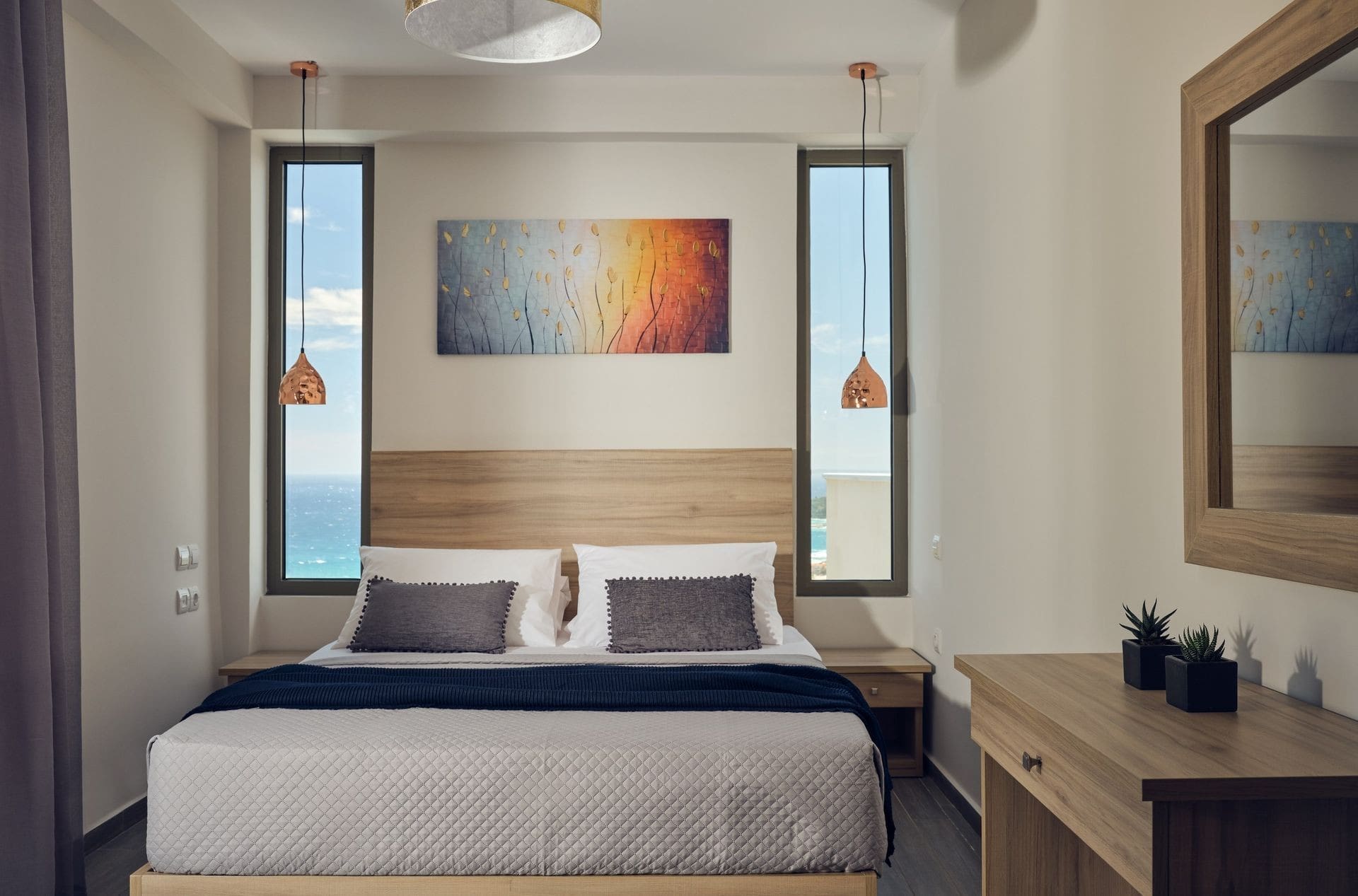 Step inside Villa Meltemi Alykes and be greeted by a harmonious blend of contemporary elegance and traditional Greek charm. The villa’s open-plan living area is flooded with natural light, offering a stylish and comfortable space for relaxation. The modern kitchen, equipped with top-of-the-line appliances, is perfect for preparing delicious meals. Each of the four bedrooms, located on the upper floor, offers a private sanctuary with en-suite bathrooms and can be configured to suit your needs, whether you prefer double or single beds. The villa accommodates up to ten guests, with additional fold-out beds available upon request.