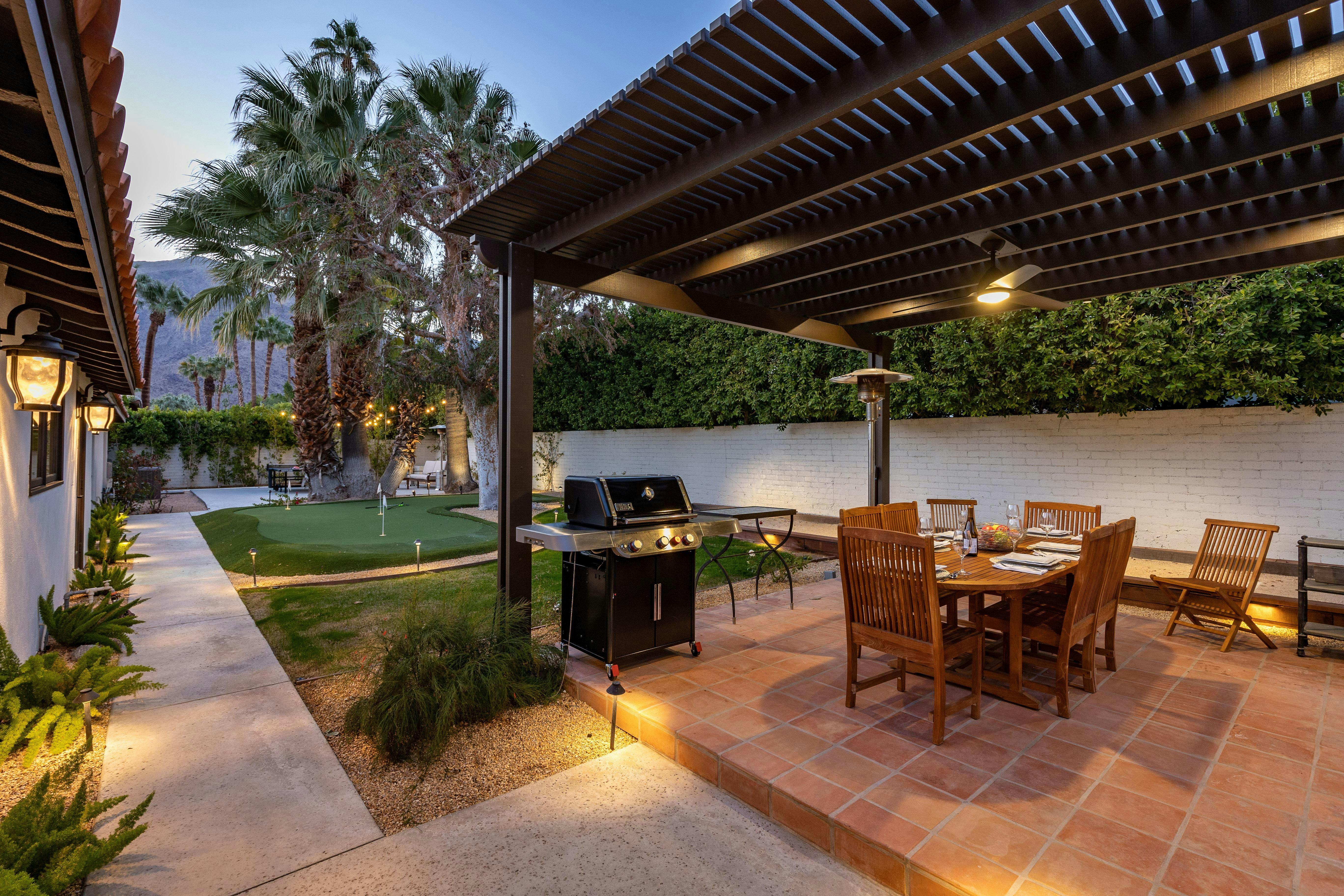 Embrace the outdoor lifestyle with the villa’s stunning pool and hot tub, set against the backdrop of Palm Springs’ scenic beauty. The expansive terraces are ideal for alfresco dining and lounging, with panoramic views that capture the essence of this desert oasis. Whether you’re sipping cocktails by the pool or enjoying a family barbecue, the outdoor spaces are designed to enhance your experience.