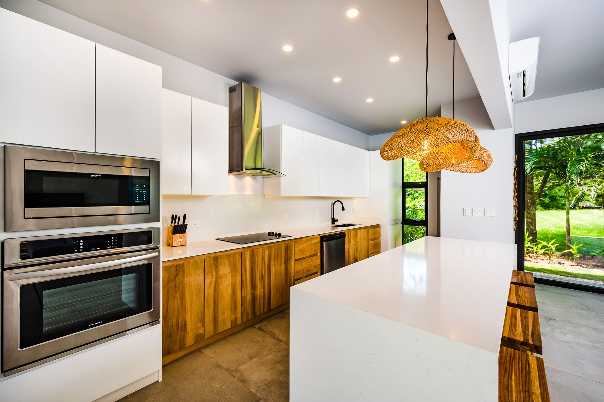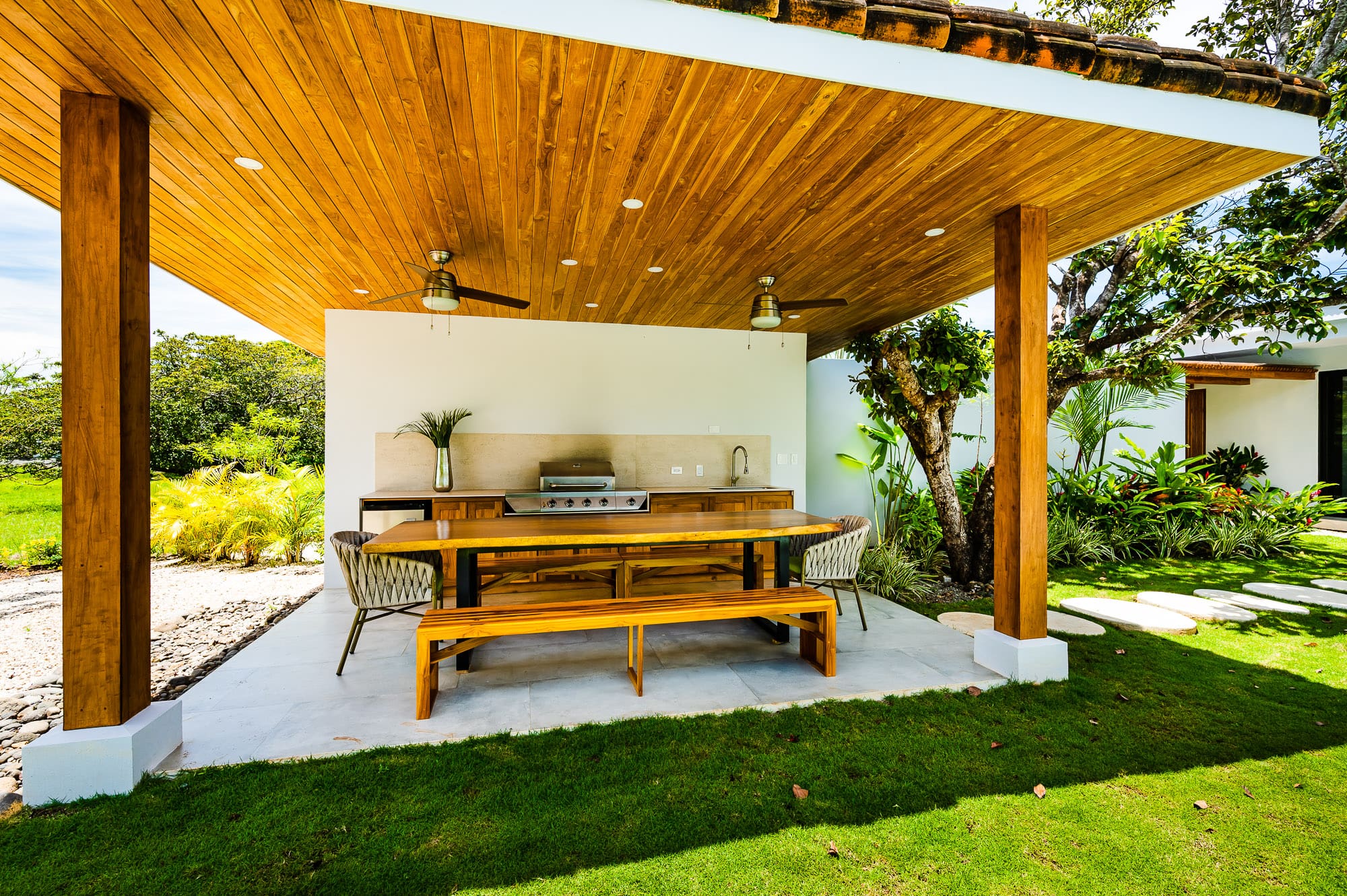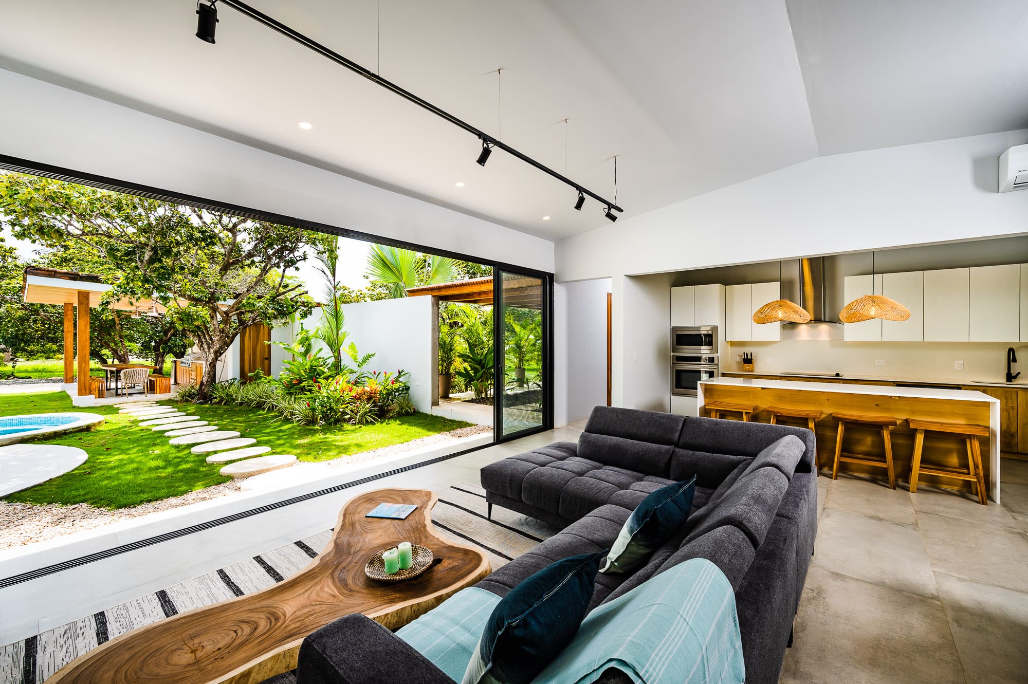 Step inside to discover a haven of elegance and comfort. The open-plan living area is designed for seamless socializing, featuring plush seating and expansive windows that invite natural light. The fully equipped modern kitchen caters to culinary enthusiasts, while the four tastefully decorated bedrooms promise restful nights. Each room reflects a subtle blend of local craftsmanship and contemporary design, ensuring a unique Costa Rican experience.