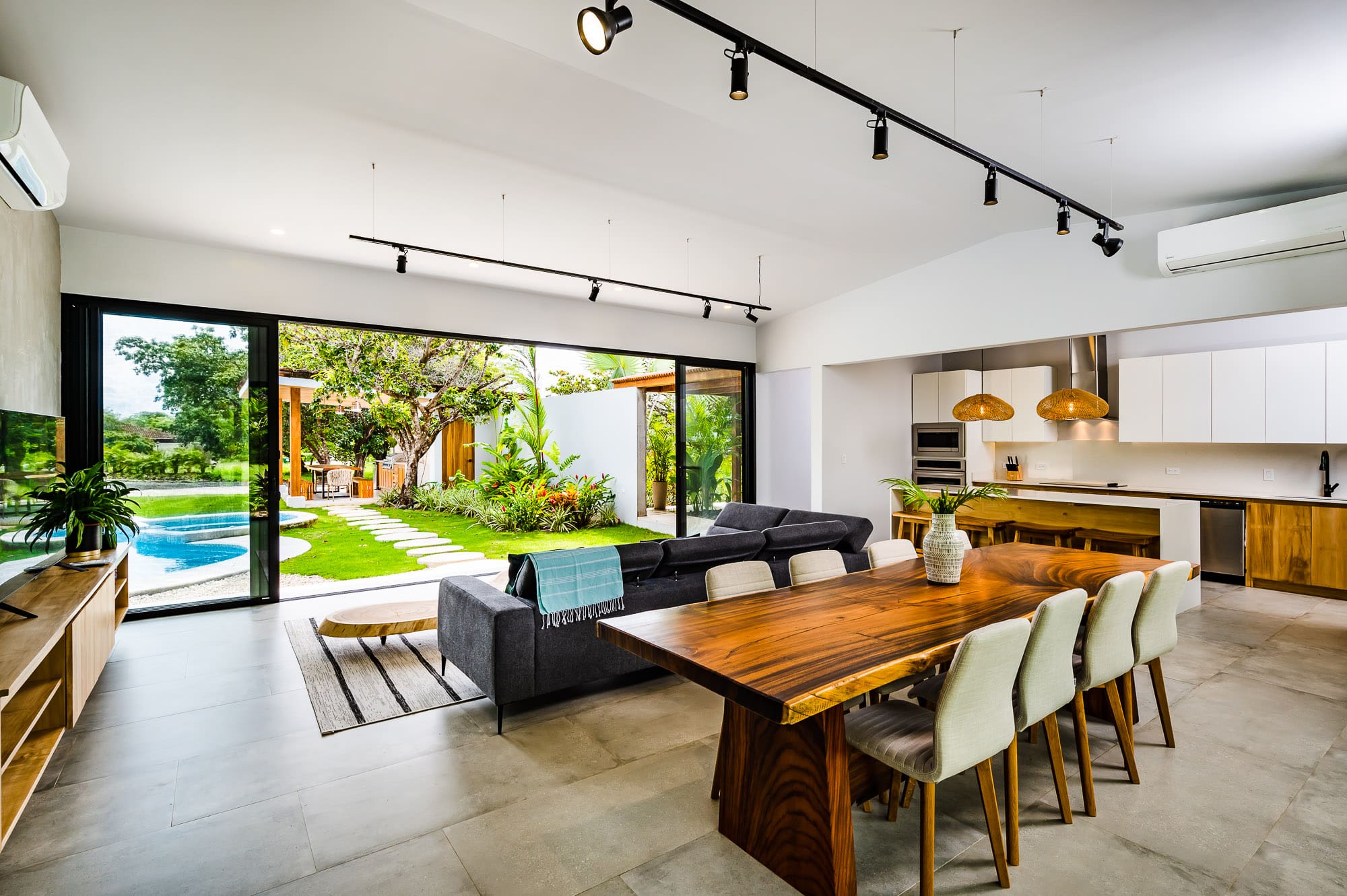 The villa accommodates up to eight guests, with four bedrooms and three bathrooms. Free parking is available, making it convenient to explore the surrounding areas. For more options, browse our luxury villa rentals in Costa Rica.