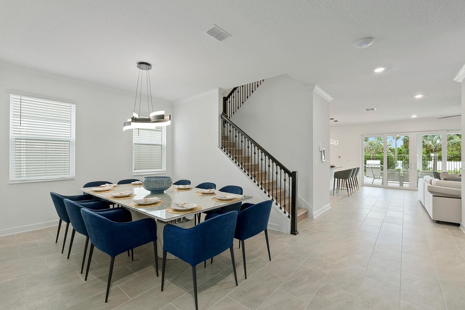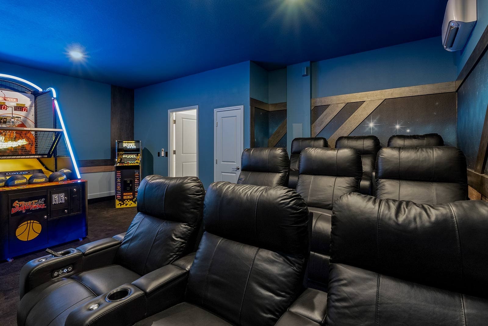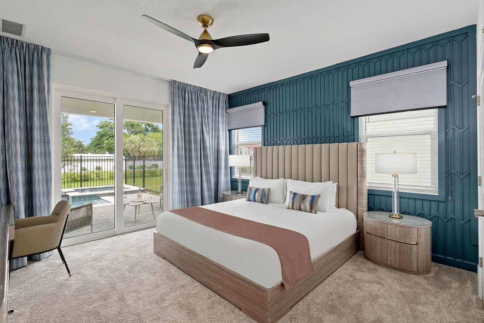 Step inside and be greeted by an interior designed to cater to your every need. With five spacious bedrooms and five modern bathrooms, this luxury villa rental in Brevard County comfortably accommodates up to 12 guests. The open-plan living area boasts elegant furnishings and a state-of-the-art kitchen, perfect for preparing gourmet meals. Families will particularly appreciate the themed children’s room and the entertainment options available, including a games room and home cinema.