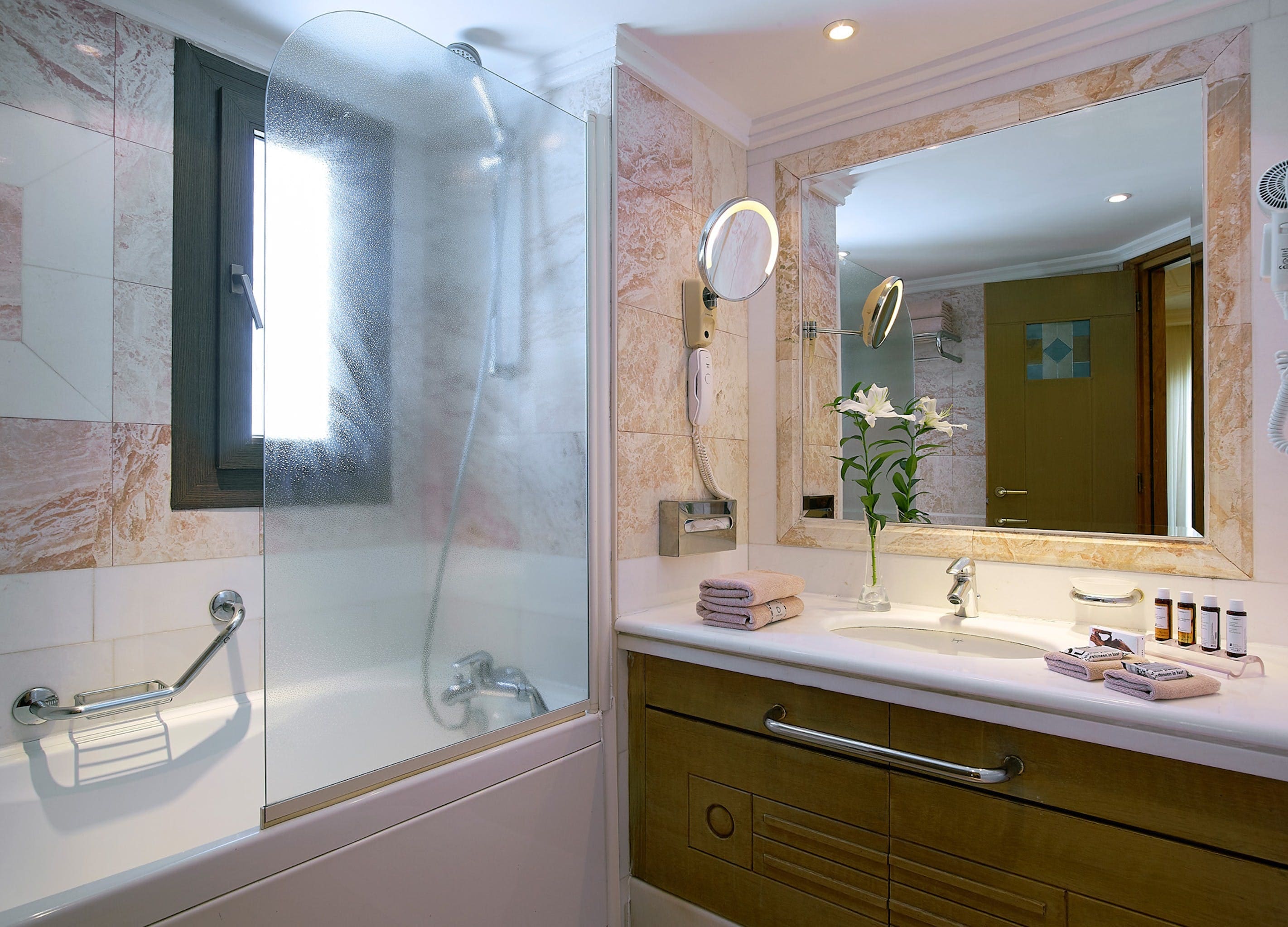 The villa is a two-story sanctuary designed for comfort and style. The spacious bedroom provides an oasis of relaxation with its plush bedding and elegant furnishings. While there’s no kitchen, enjoy the convenience of a fridge, coffee and tea-making facilities, and an Espresso machine to start your day. The villa’s interior is a blend of modern design and traditional Greek elements, creating an inviting ambiance.