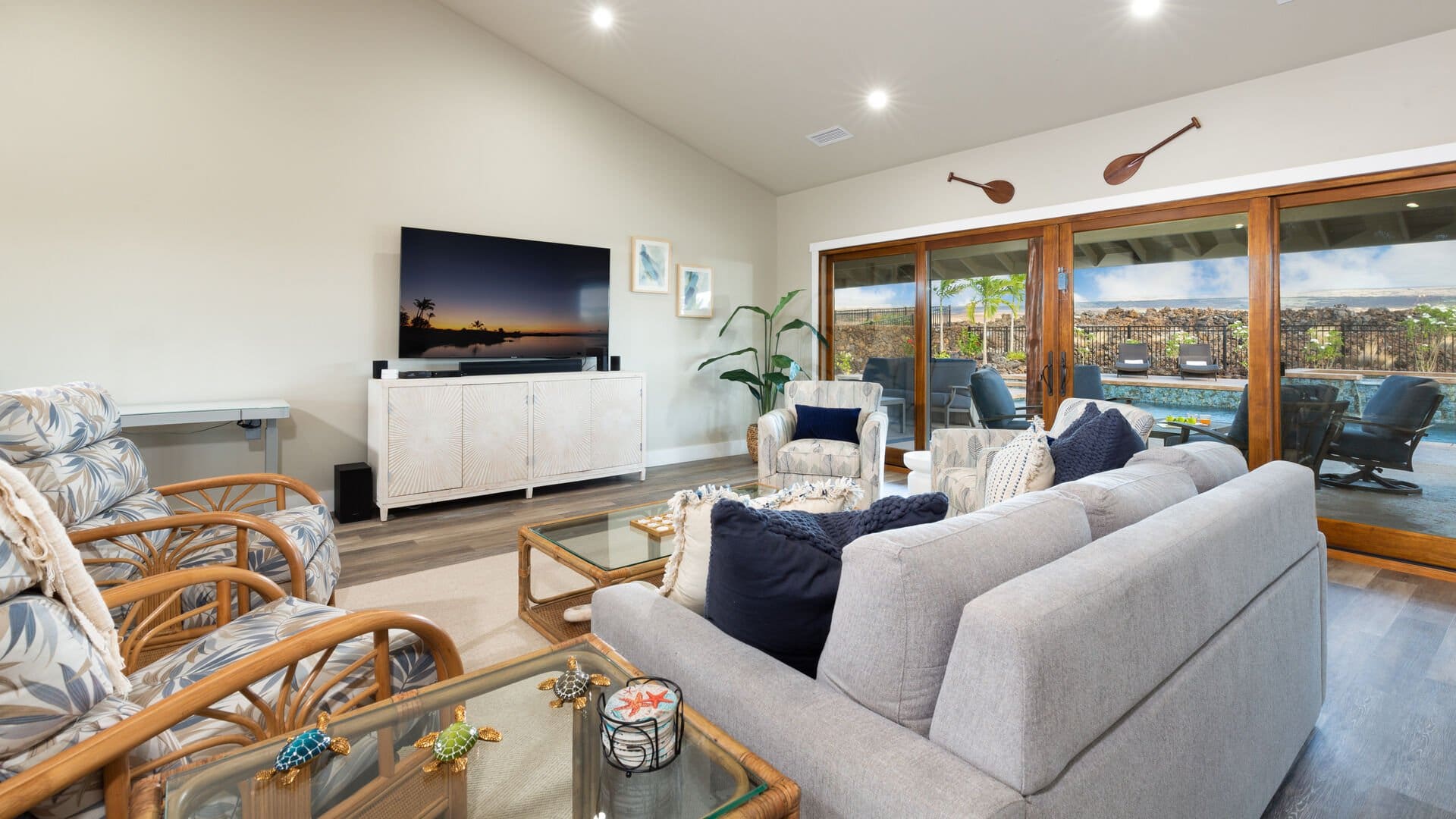 A: The villa’s standout feature is its expansive lanai with stunning seaviews and outdoor kitchen.