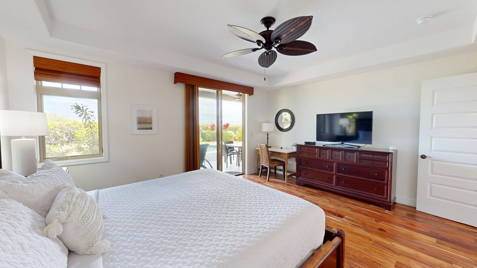 Step outside to discover your private Hawaiian oasis. The spacious lanai is ideal for alfresco dining against the backdrop of the ocean. Take a dip in the sparkling swimming pool or unwind in the hot tub. With beach access just a short walk away, enjoy endless days of sun and surf. The house also offers access to shared facilities including a children’s pool and fitness room.