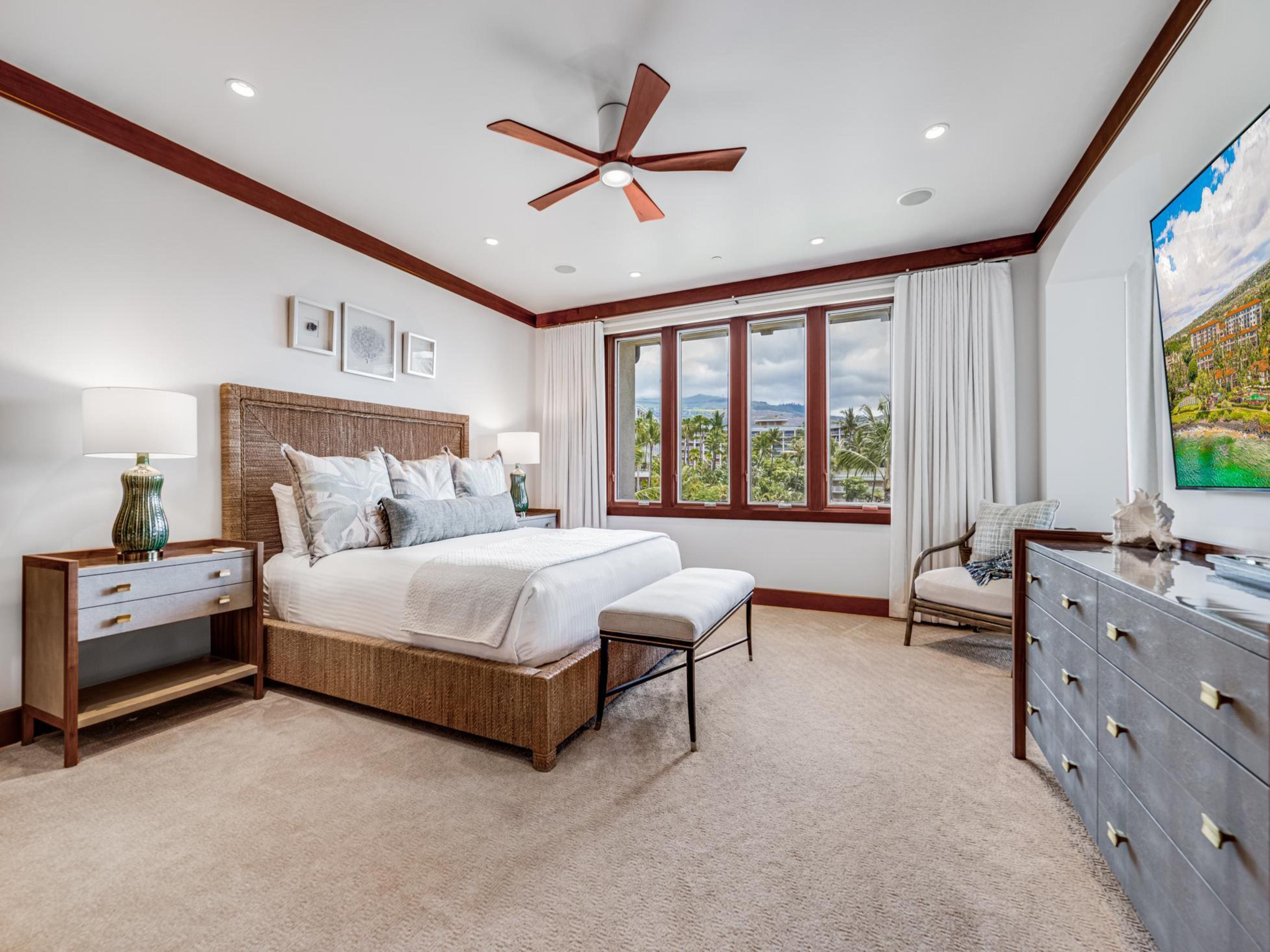 Step inside this elegantly designed villa and be greeted by spacious interiors that blend contemporary style with island charm. The open-plan living area features plush seating and large windows, allowing natural light to flood the space. The fully equipped gourmet kitchen is a culinary enthusiast’s dream, complete with high-end appliances and a generous island. Each of the three bedrooms offers a peaceful sanctuary, with luxurious bedding and en-suite bathrooms that feature rain showers and premium amenities. The main suite also includes a dedicated workspace, perfect for guests needing to stay connected during their holiday.