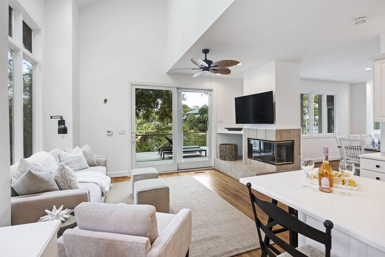 Outside, the villa’s expansive deck offers breathtaking views of the surrounding landscape, including a seaview that promises stunning sunsets. Enjoy alfresco dining or simply relax with a book, all while being just steps away from a tennis court and nearby beach. The villa’s location allows for easy exploration of Charleston County’s natural beauty.