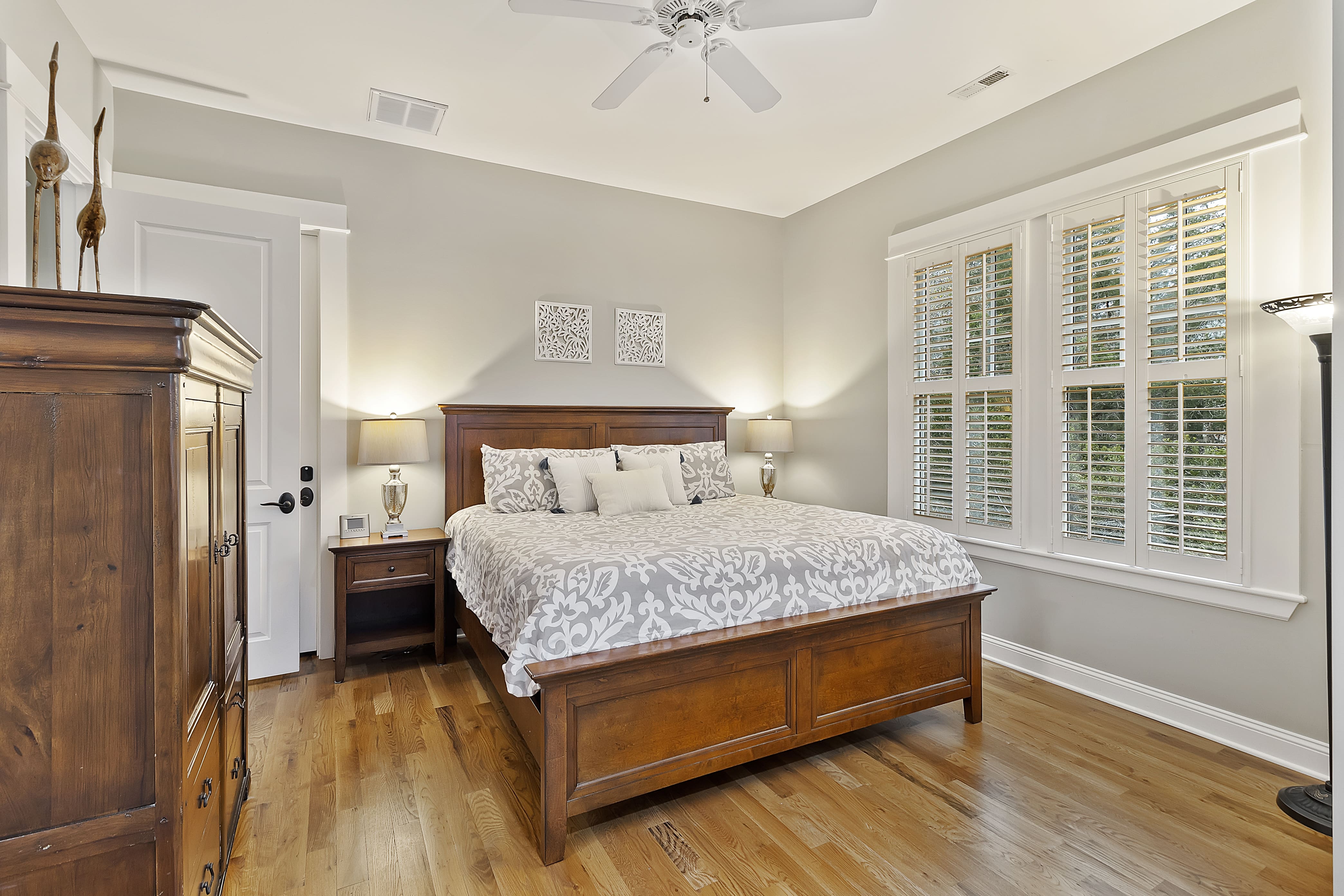 The interior of this luxury house rental on Johns Island is designed with both elegance and functionality in mind. The spacious living areas feature plush furnishings and tasteful decor, creating a welcoming atmosphere for relaxation and socializing. The fully-equipped kitchen is a culinary haven, perfect for preparing delicious meals with fresh local ingredients. Each of the five bedrooms is a sanctuary of comfort, ensuring restful nights with high-quality bedding and ample storage. With four bathrooms, guests can enjoy the convenience of their own private space.