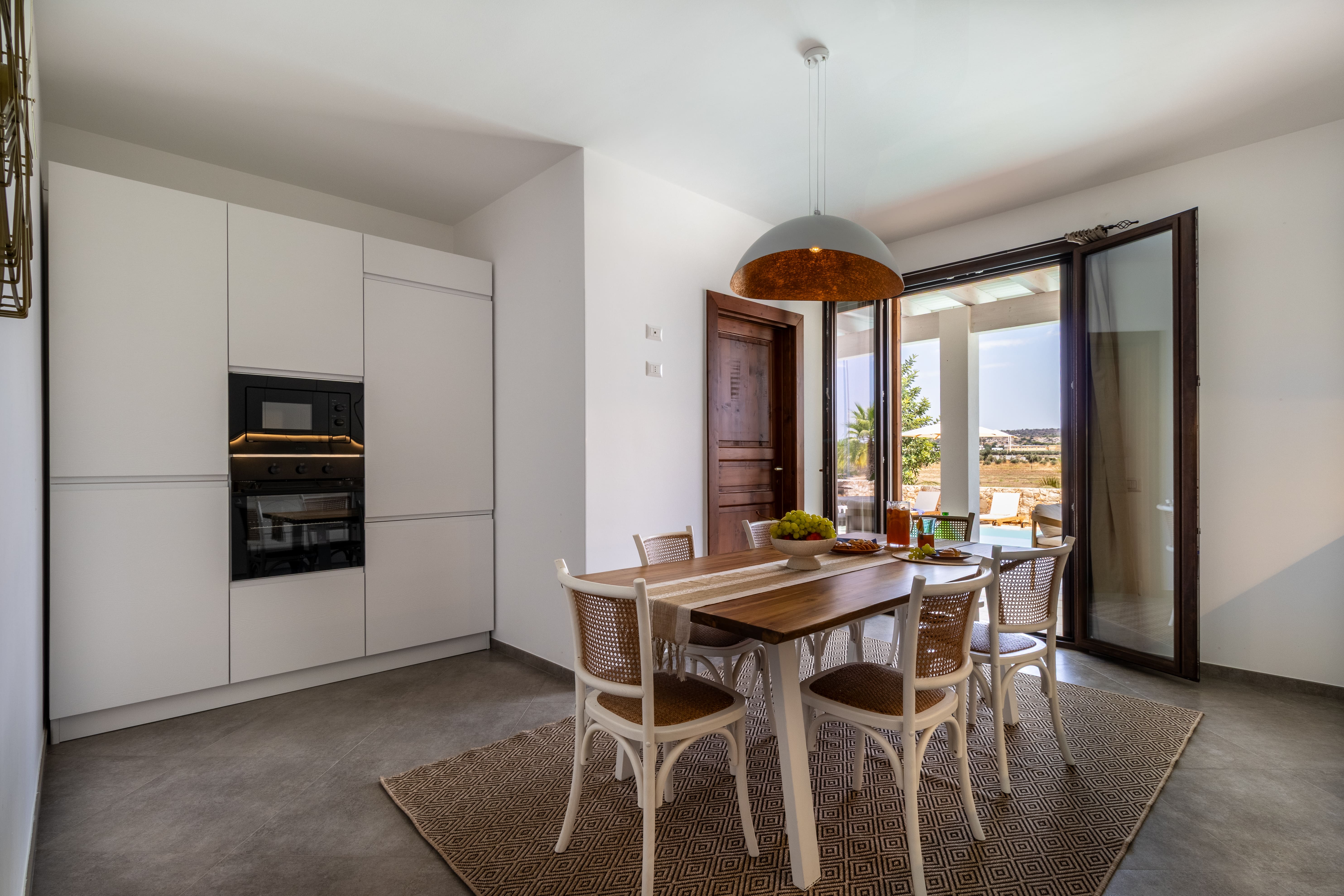 Step inside Villa Oliveto Parabita and be captivated by its elegant design and thoughtful details. The villa features four spacious bedrooms, each with an en-suite bathroom, offering privacy and comfort for up to eight guests. The interiors are adorned with whitewashed walls and vibrant accents, creating a bright and welcoming atmosphere. The living area is a haven of relaxation, with comfortable seating and large windows that allow natural light to flood the space. The fully equipped kitchen invites culinary adventures, complete with modern appliances and a stylish dining area for shared meals.