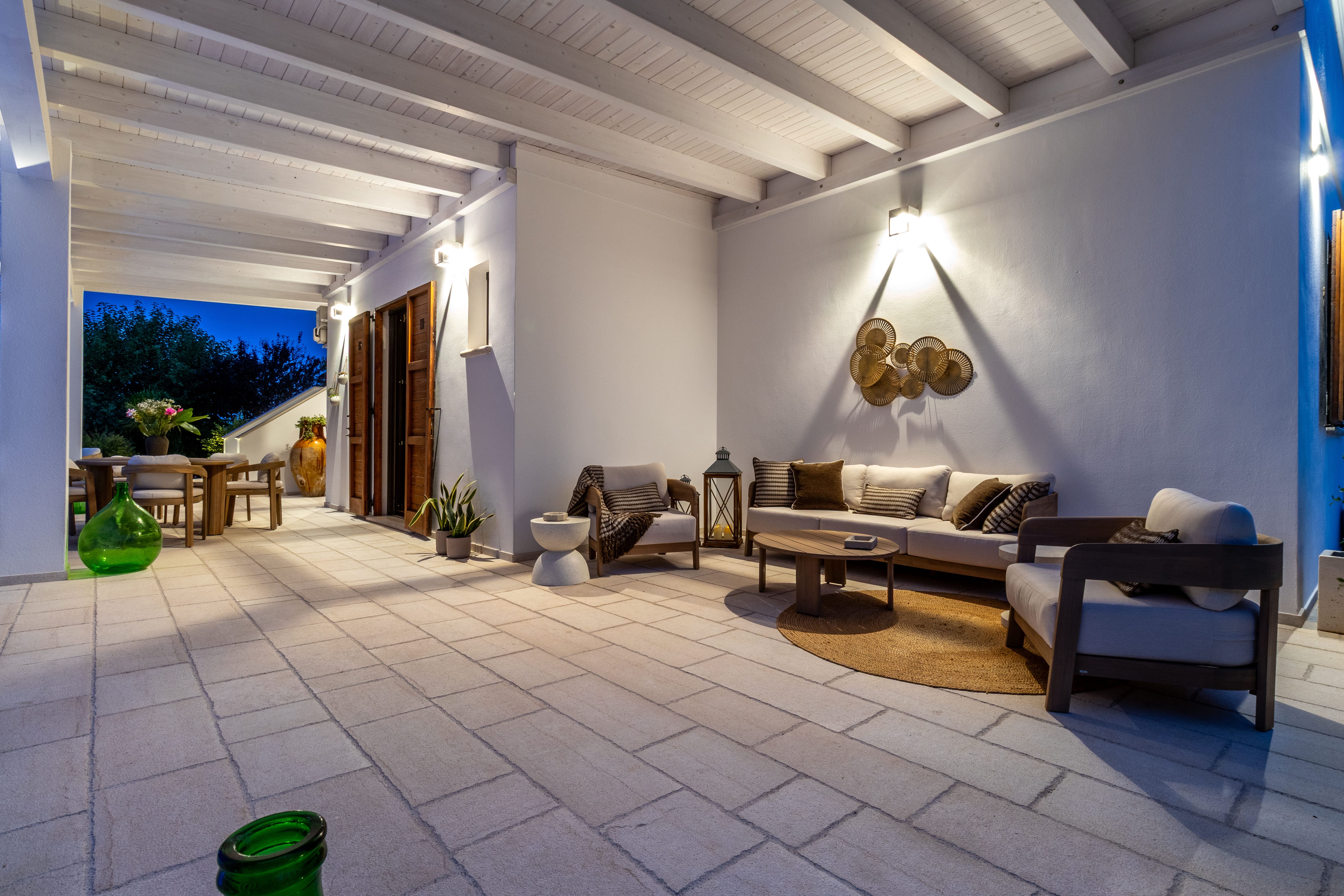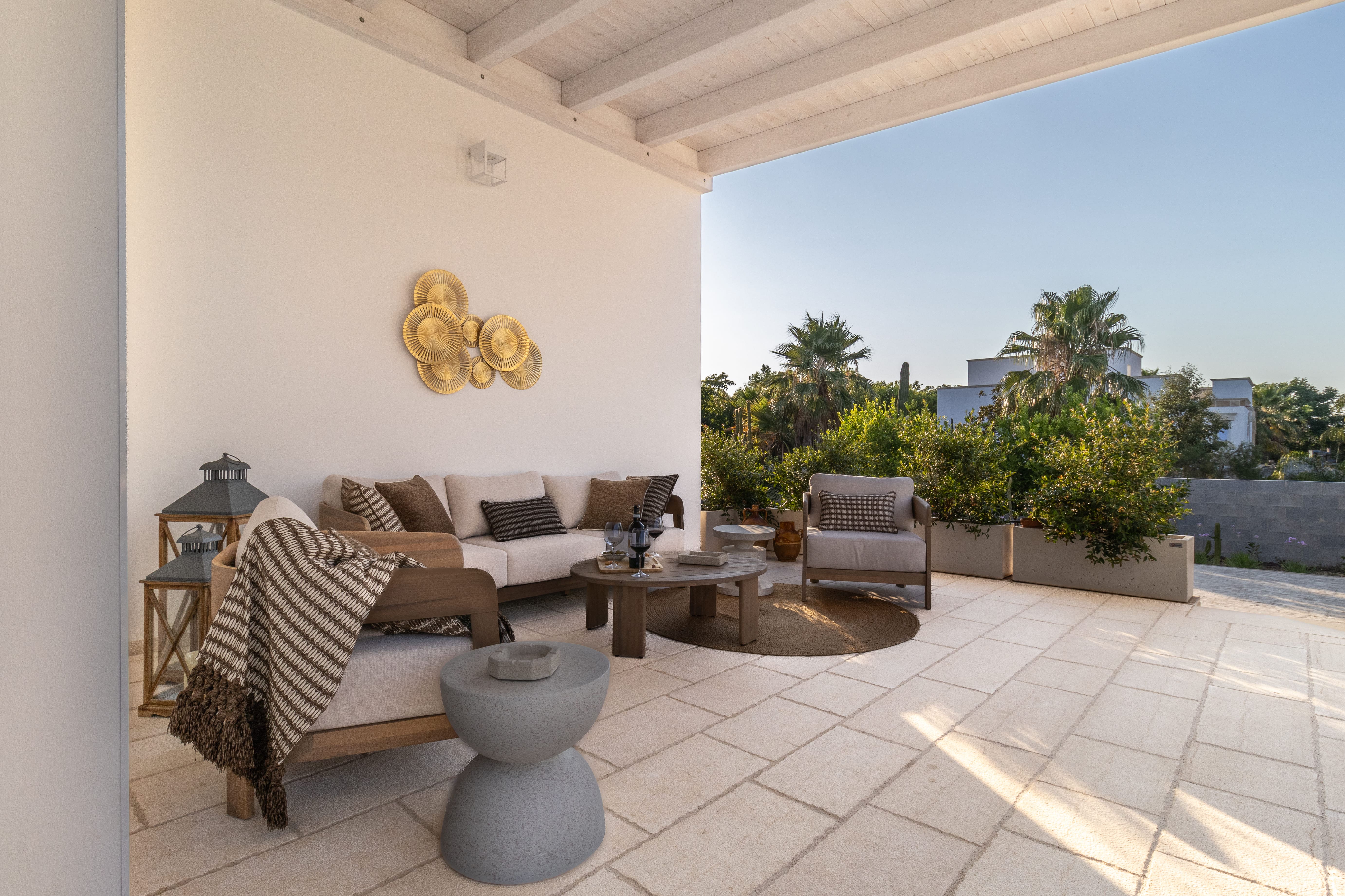 The outdoor spaces of Villa Oliveto Parabita are nothing short of spectacular. The infinity pool provides a stunning focal point, with panoramic views of the surrounding landscape. Lush gardens filled with fruit trees create a private oasis, while the shaded pergola and outdoor seating areas offer the perfect spots for al fresco dining and relaxation. Whether you want to bask in the sun or enjoy a quiet afternoon in the shade, the villa’s outdoor spaces cater to every desire.