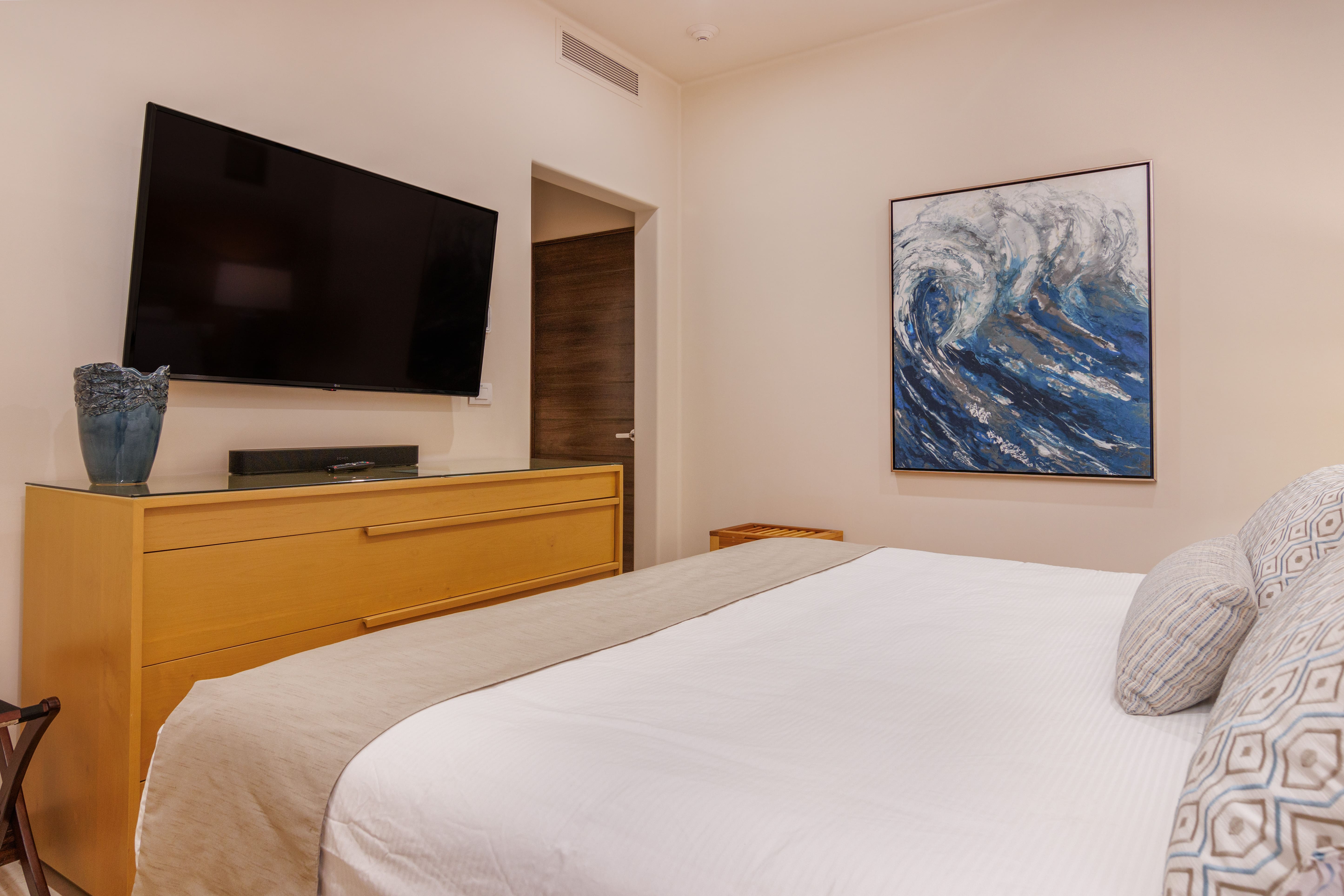 Embrace the outdoors with direct access to a communal swimming pool and a private terrace featuring a hot tub, ideal for unwinding as the sun sets over the ocean. The resort’s 10-acre crystal lagoon and beachfront location provide endless opportunities for relaxation and adventure, all set against the backdrop of Cabo San Lucas’s natural beauty.