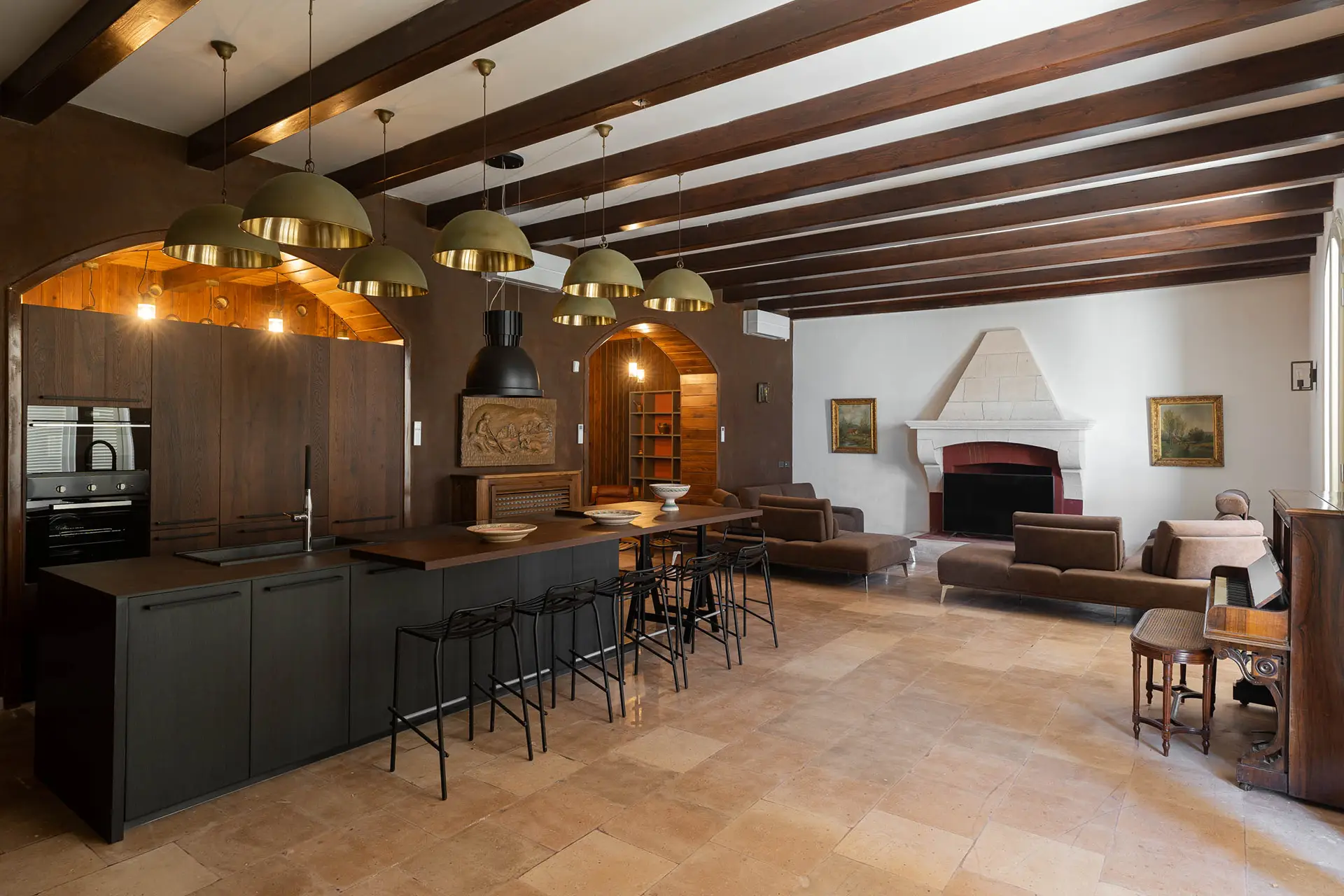 Step inside to discover a seamless blend of timeless elegance and contemporary comfort. The interior features four Trulli-style stone houses, each offering en-suite bedrooms with modern furnishings and unique charm. The main living area is your personal taverna, complete with a cozy fireplace, plush seating, and a piano for evening entertainment. A fully-equipped kitchen and a separate service kitchen ensure every culinary need is met, whether you’re dining in or out on the terrace.