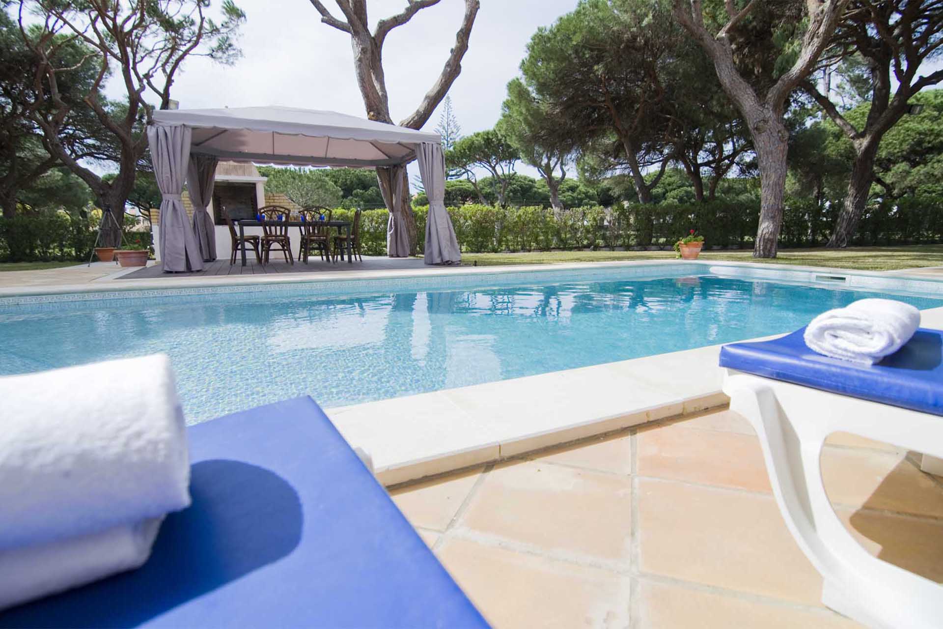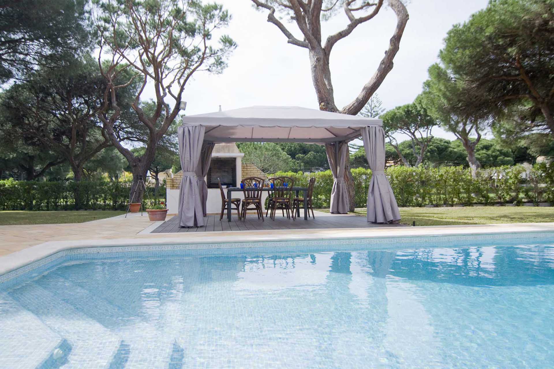 The garden is where you and your guests are likely to be spending most of your time. The large area, with its intricate and well-maintained lawns, has a modern swimming pool; making it perfect for swimmers of all ages and abilities. Opposite the swimming pool, there is a large fixed masonry barbecue and dining area protected by a marquee.Vilamoura has a rich Roman history. An old fishing village and Roman Baths can be found in the town, where the walls tell the history of the destination, through their murals. Vilamoura is a trendy seaside town, that attracts a classy traveller. A host of prestigious yachts & boats swarm the Marina, which spills onto a strip of stylish bars, locally renowned restaurants and a casino. The glamour does not end there, as Praia da Marina and Praia de Falesia – two alluringly sandy beaches, can be found a short walk away.