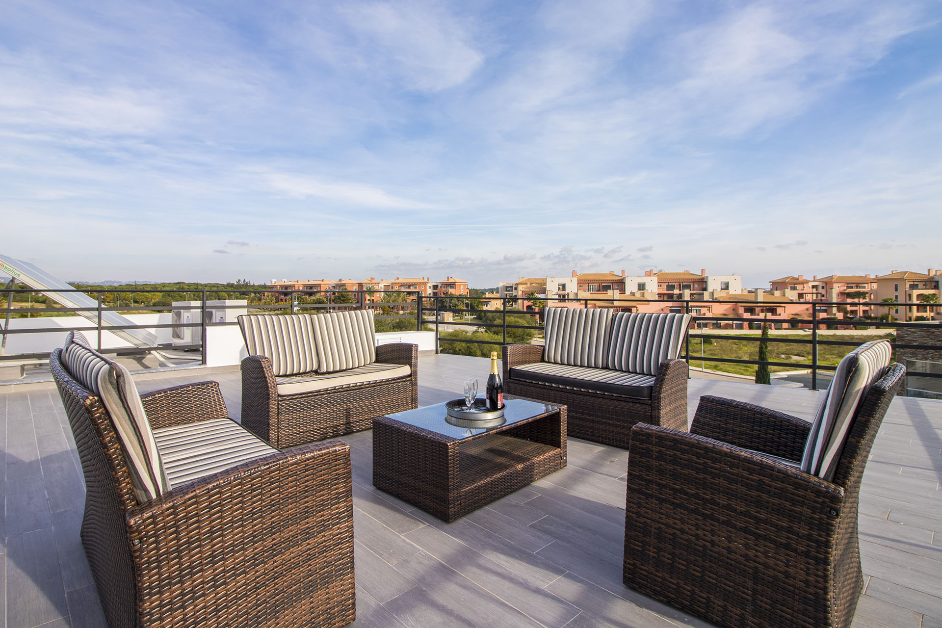 Continuing up the stairway you will discover a rooftop promenade, fitted out with sofas and a table. This is a great space to make the most of the setting sun, where you will be able to see it diffuse across the skyline at dusk.