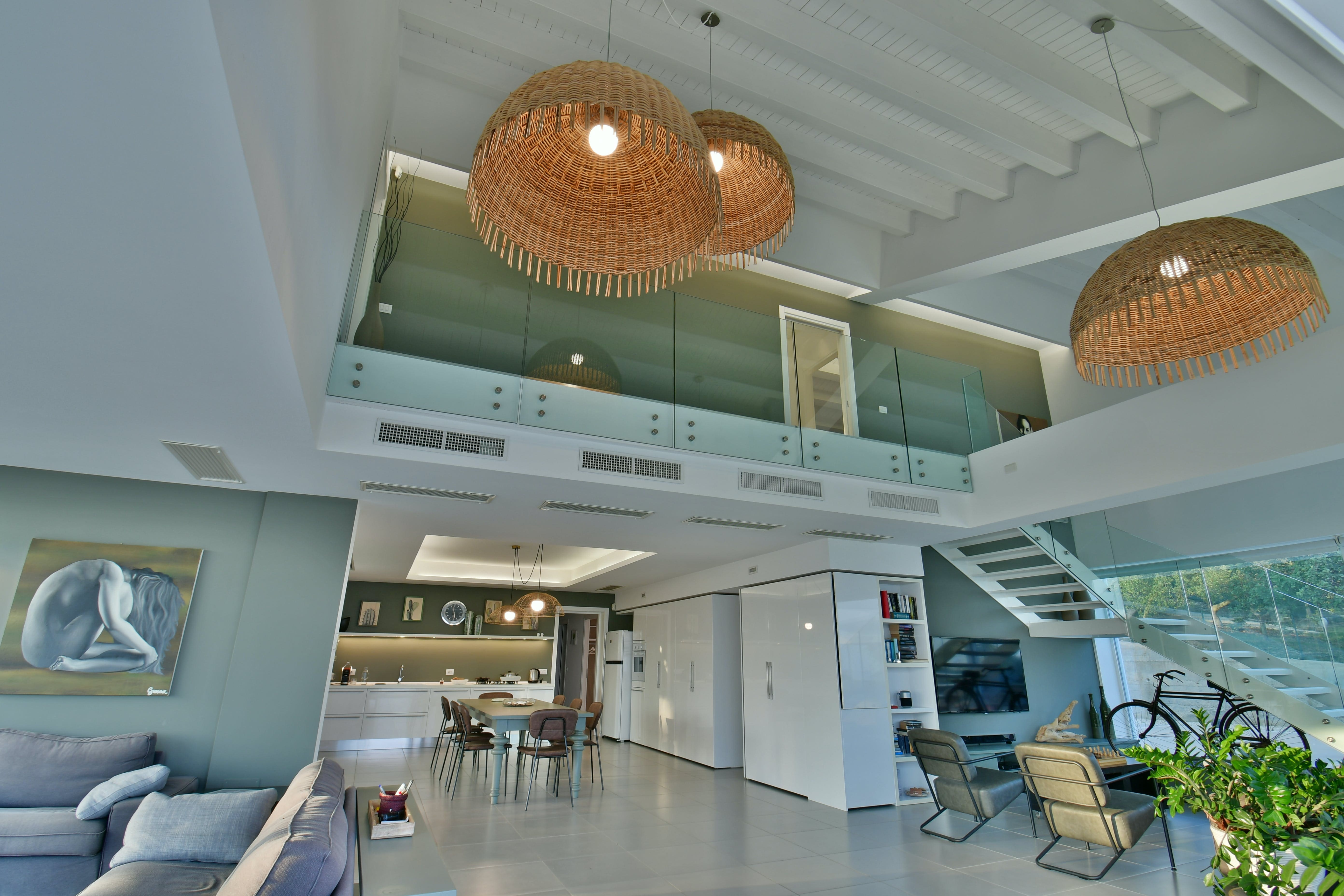 Outside, the villa’s expansive terrace offers breathtaking views of the surrounding countryside, bordered by olive and carob trees. Whether lounging by the private swimming pool or soaking in the hot tub, the outdoor spaces are designed for ultimate relaxation. Enjoy alfresco dining with family and friends while savoring the gentle Sicilian breeze.